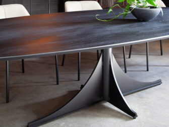 Het massieve hout dat wij gebruiken als tafelblad kan op verschillende manieren worden bewerkt. Zo kunt u ervoor kiezen om het hout te laten roken, wat het een donkerdere kleur geeft. We kunnen het zelfs tweemaal voor u roken om de donkere kleur verder door te voeren.