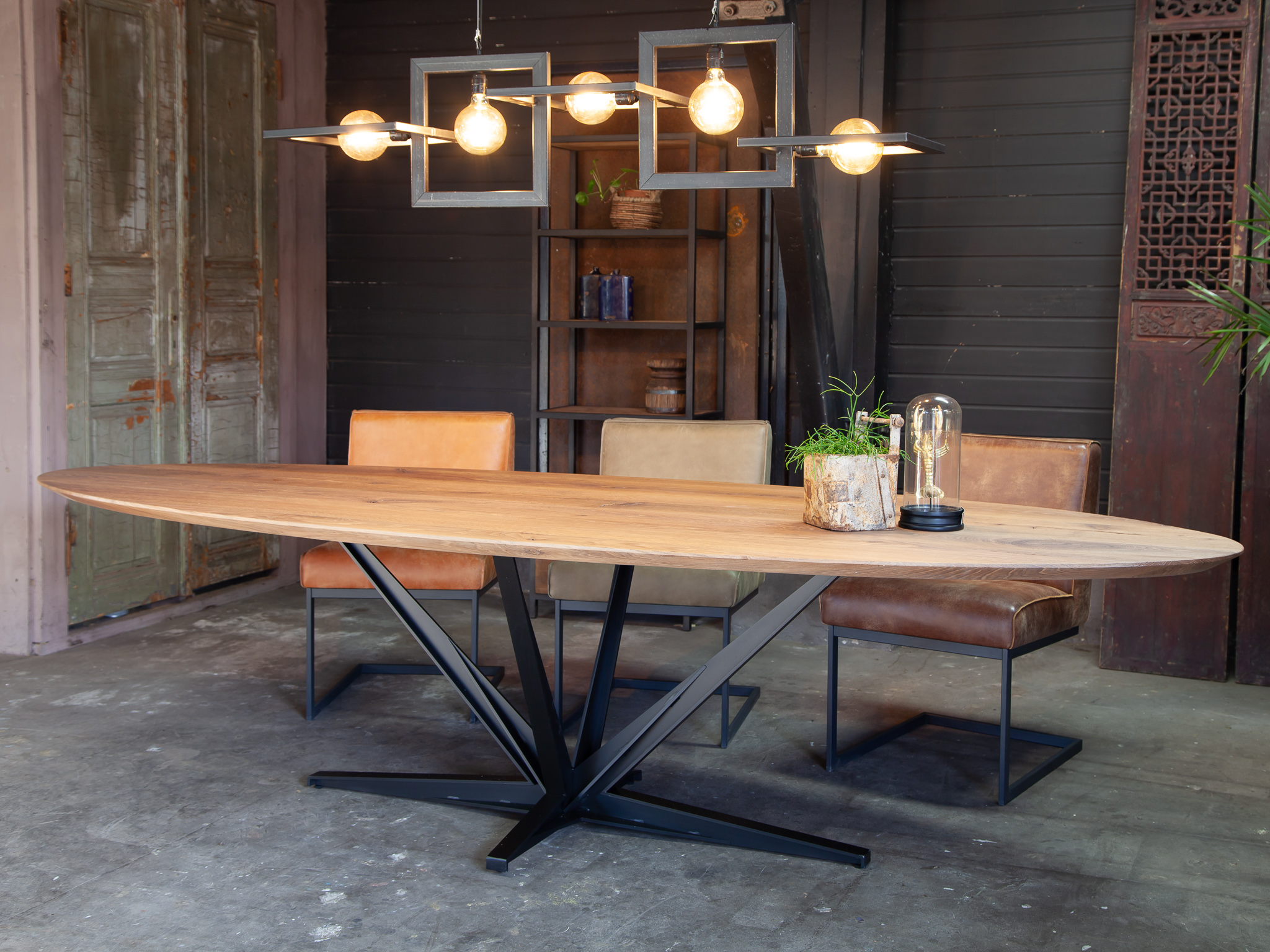 Onze Collistar is een tafel uit onze collectie die u niet kunt missen. Door zijn opvallende ster onderstel is deze tafel een opvallende verschijning en een ideale partner voor een eetkamerbank. Het eikenhout van de Collistar tafel is verkrijgbaar in verschillende behandelingen, afwerkingen en vormen. Deze tafel maken wij volledig op maat in onze eigen tafelwerkplaats. Maatwerk is dan ook geen probleem, ook hebben we een bijpassende salontafels van eikenhout.
