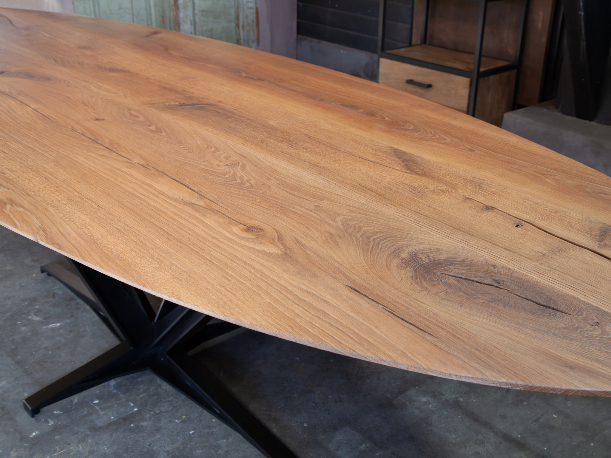 In beide showrooms vindt u een ruim aanbod van onze eigen maatwerk tafels, de diverse behandelingen, blad stijlen en afwerkingen van het tafelblad kunt u hier in het echt zien. We hebben echter niet alle tafels in de showroom staan, bent u op zoek naar een specifiek model, neem dan contact op om te horen of en in welke showroom dat model staat.