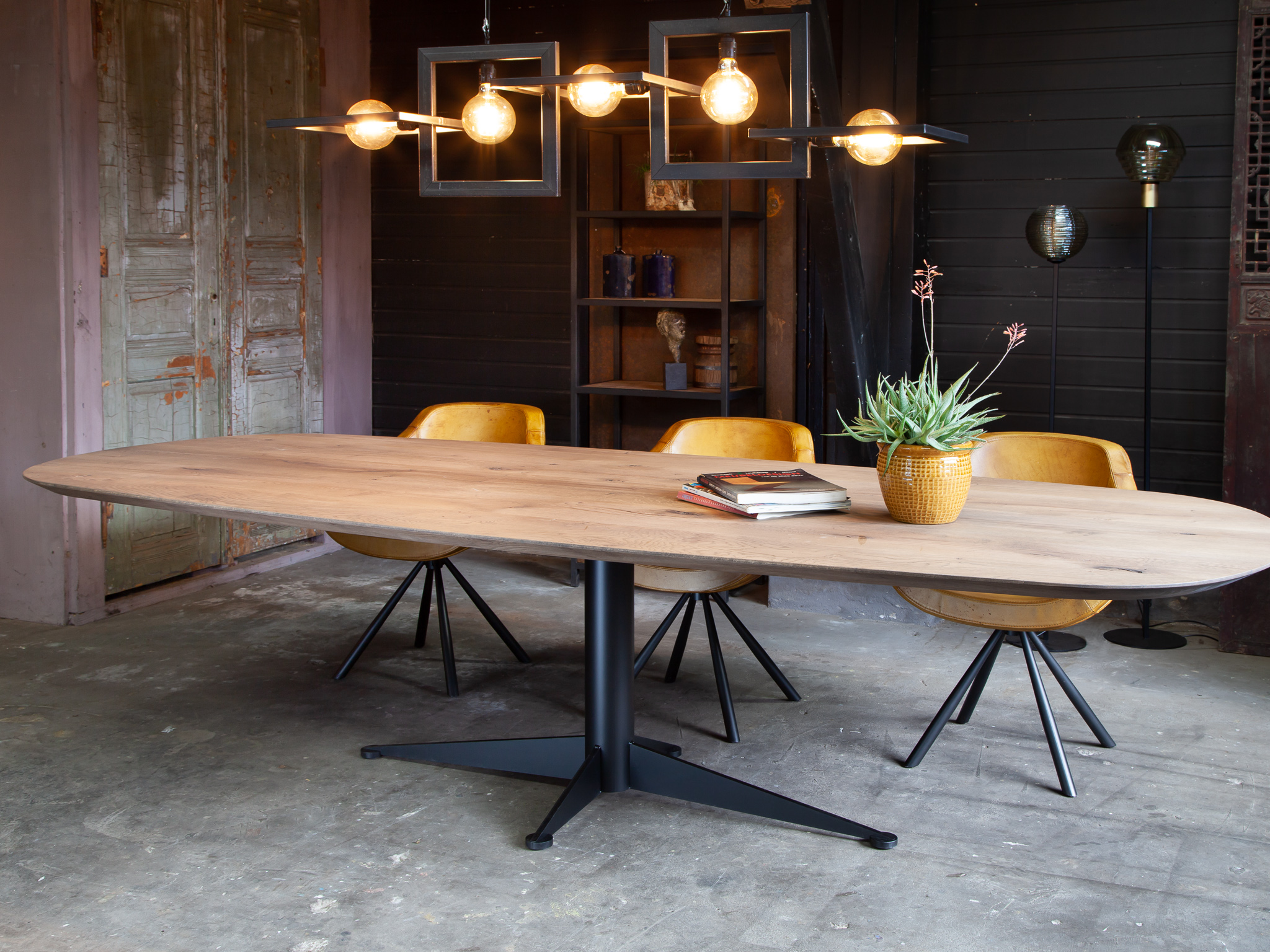 Onze Evora is een tafel uit onze collectie die u niet kunt missen. Door zijn middenpoot met 4 tenen is deze tafel een opvallende verschijning en een ideale partner voor een eetkamerbank. Het eikenhout van de Evora tafel is verkrijgbaar in verschillende behandelingen, afwerkingen en vormen. Deze tafel maken wij volledig op maat in onze eigen tafelwerkplaats. Maatwerk is dan ook geen probleem.
