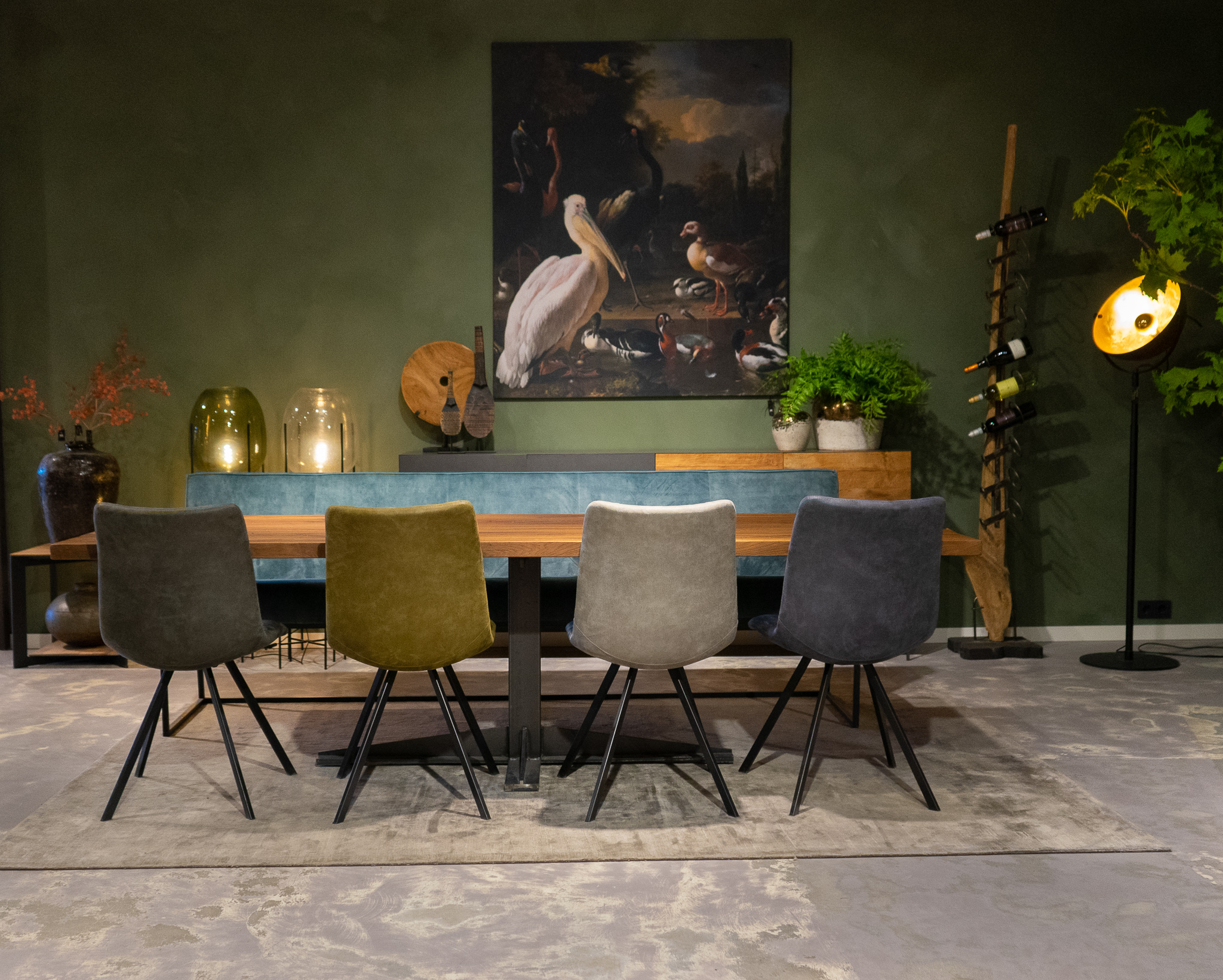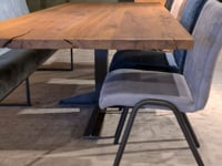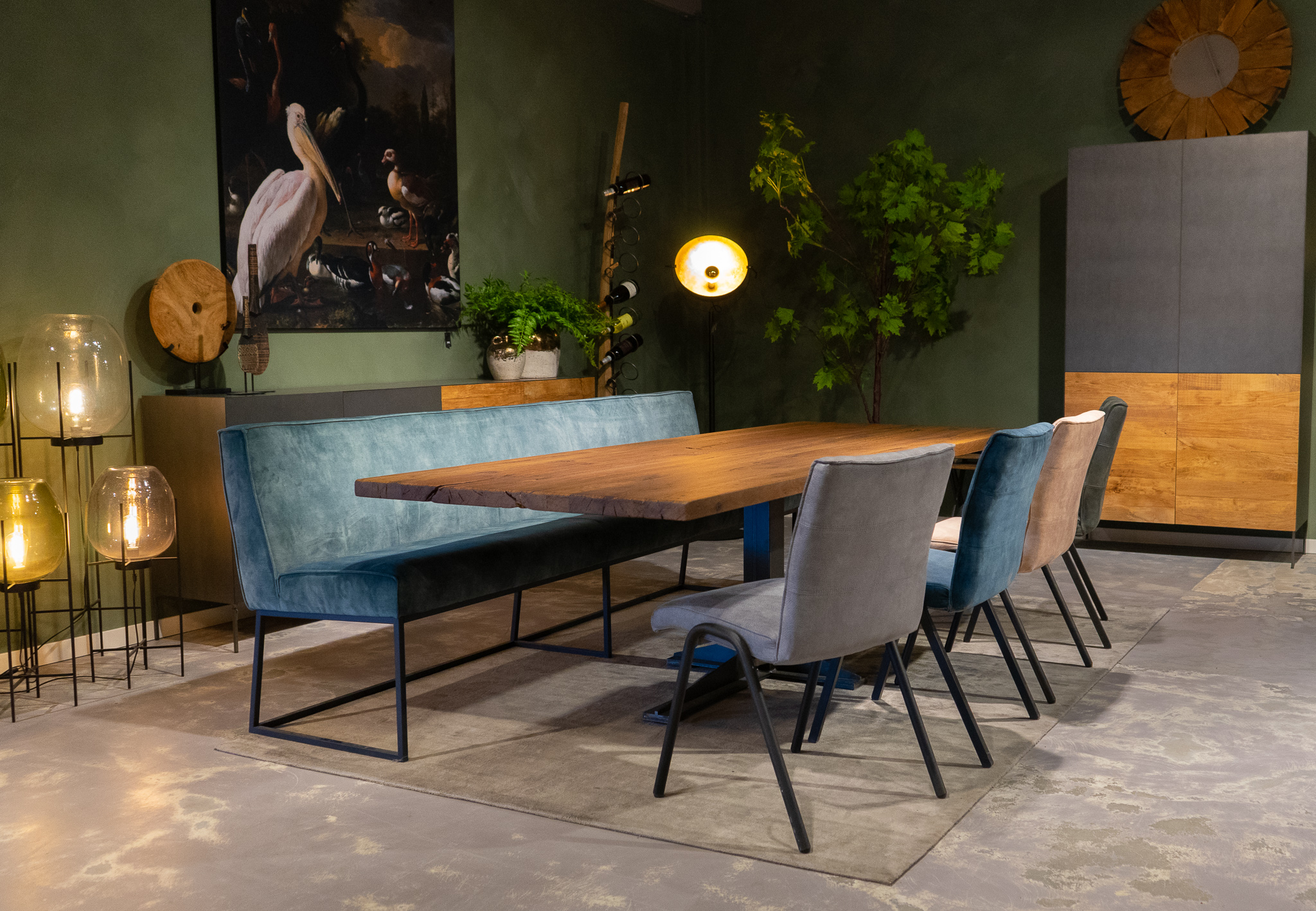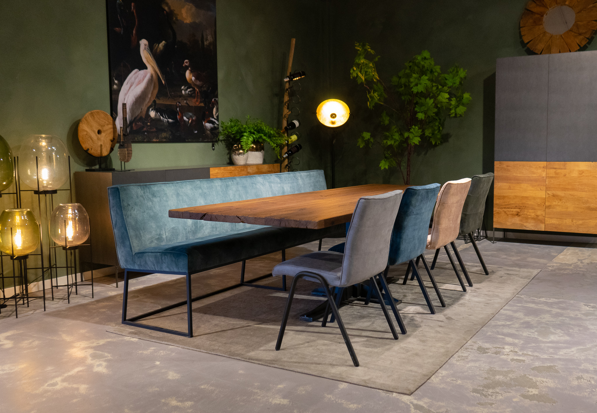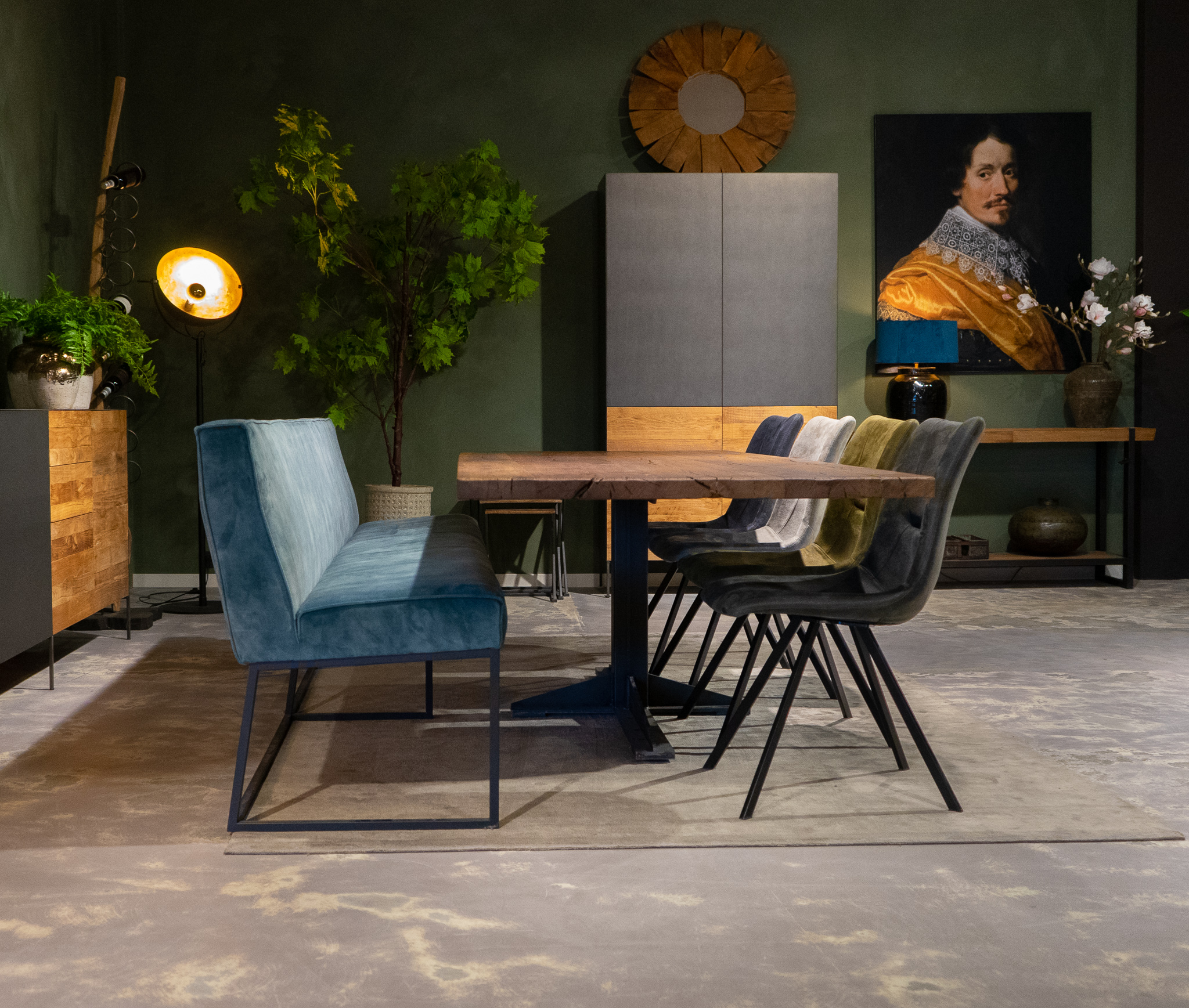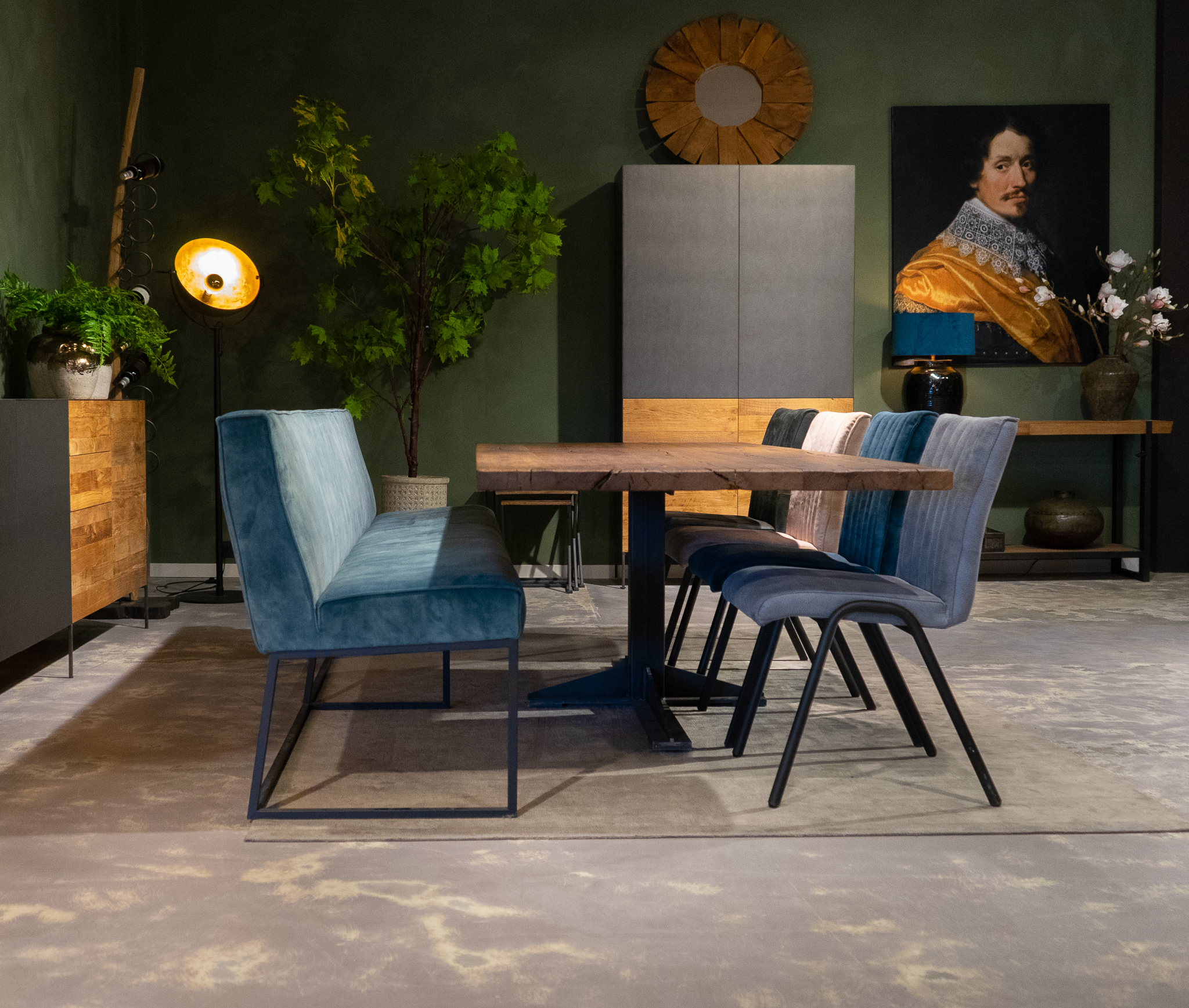 U kunt de eetkamertafel Villefranche mooi combineren met een eetkamerbank. Het onderstel zit u namelijk niet in de weg bij het inschuiven. Wij adviseren om de eetkamerbank circa 10-20cm korter te nemen t.o.v. de lengte van de tafel. Ook is het mogelijk om een extra eetkamerstoel aan de kopse kant te plaatsen mocht het nodig zijn.