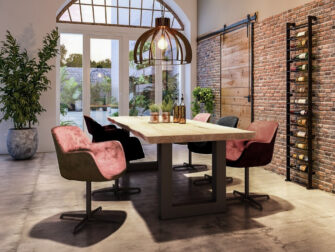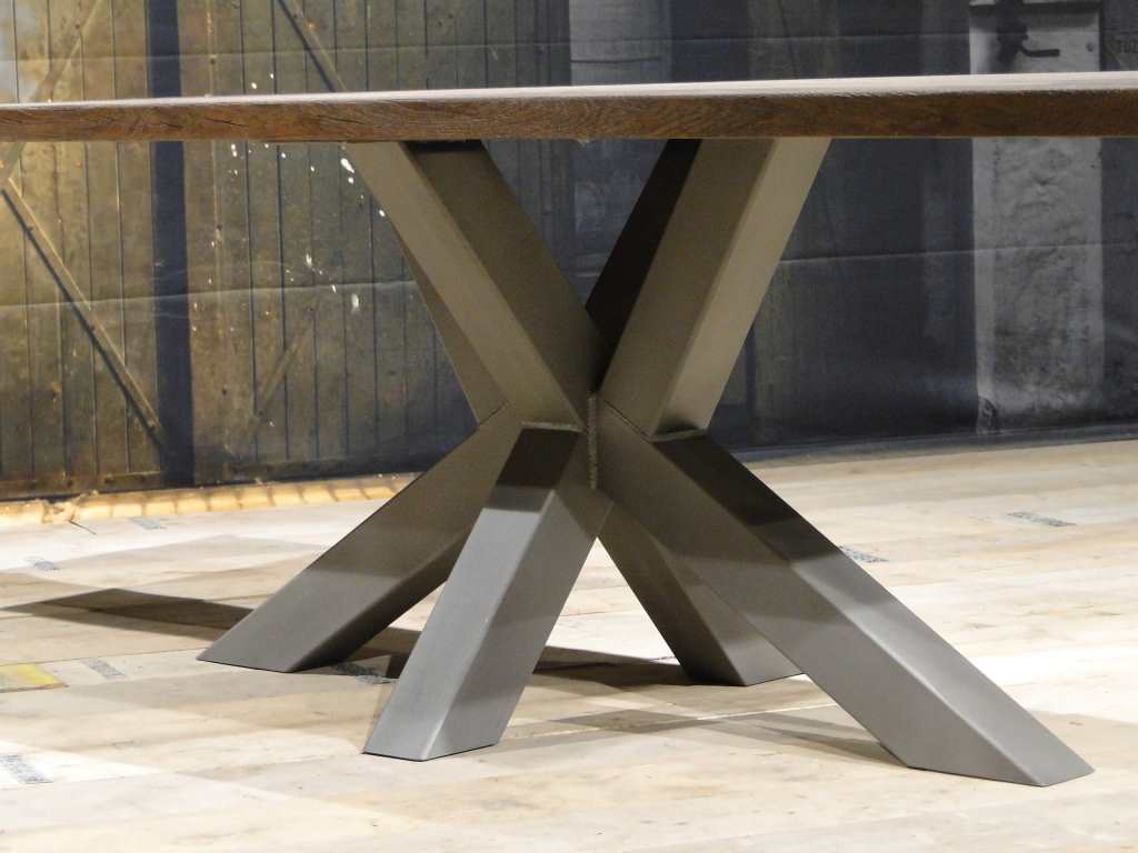 De eetkamertafel Antibes beschikt over een stalen spinnenpoot. Standaard kiest u voor een uitvoering in donker staal met een blanke coating. U kunt daarnaast kiezen voor een zwart of wit gespoten onderstel of kijk ook eens naar onze houten spinnenpoot-tafel Chartres.