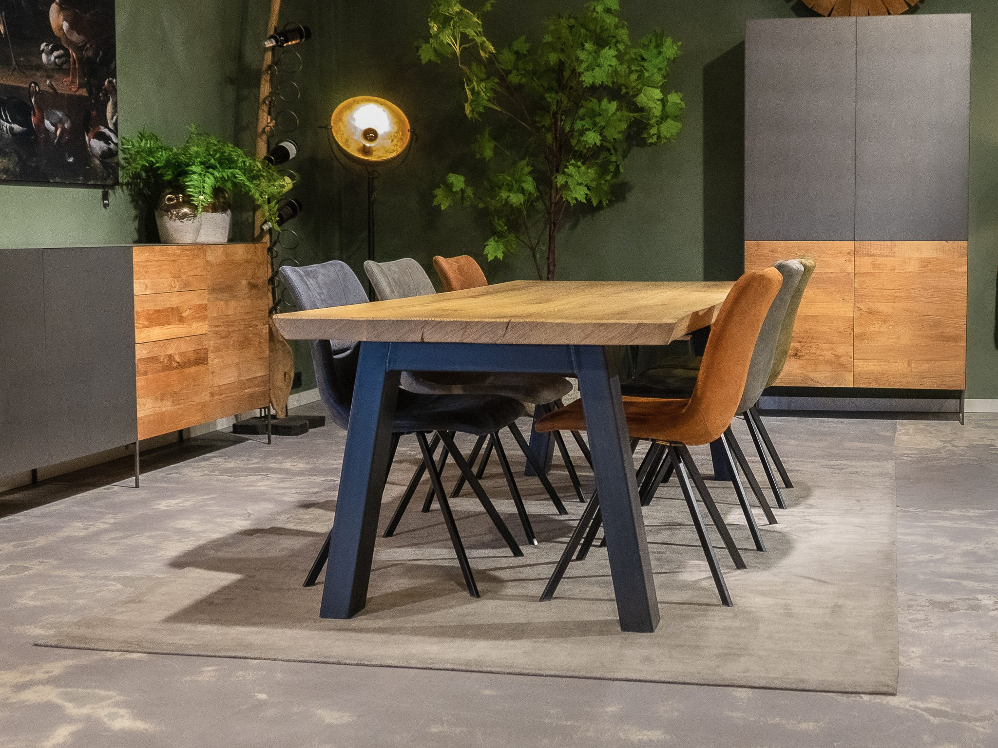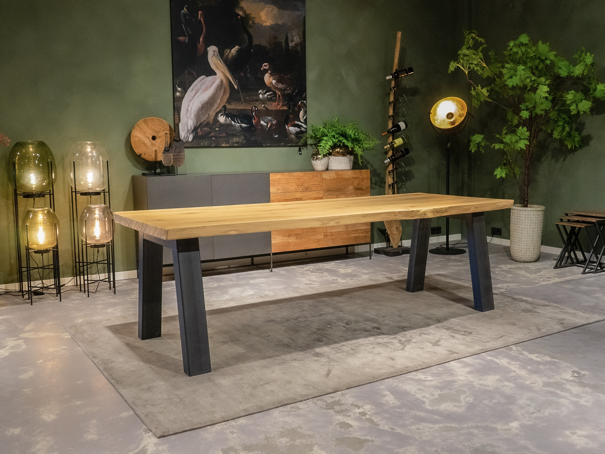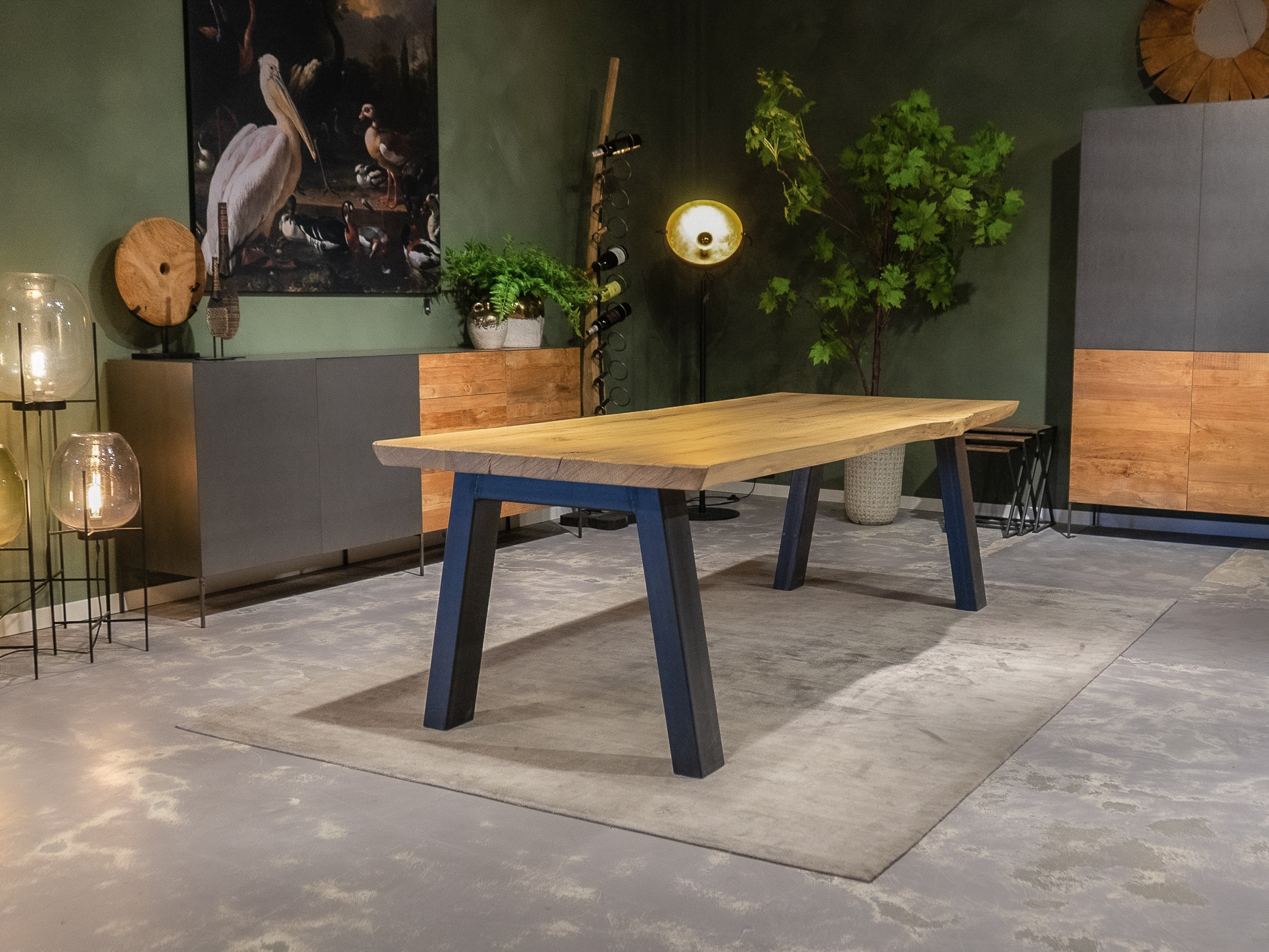 In beide showrooms vindt u een ruim aanbod van onze eigen maatwerk tafels, de diverse behandelingen, blad stijlen en afwerkingen van het tafelblad kunt u hier in het echt zien. We hebben echter niet alle tafels in de showroom staan, bent u op zoek naar een specifiek model, neem dan contact op om te horen of en in welke showroom dat model staat.