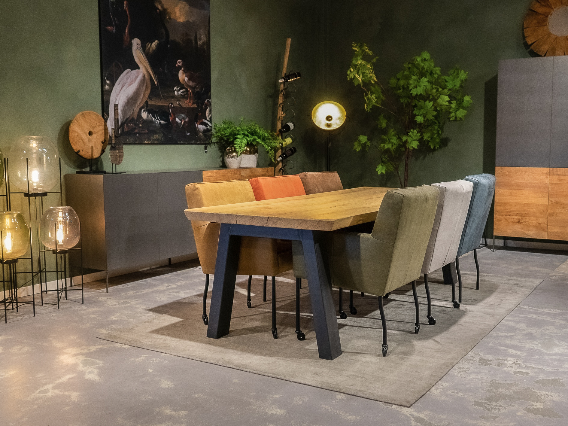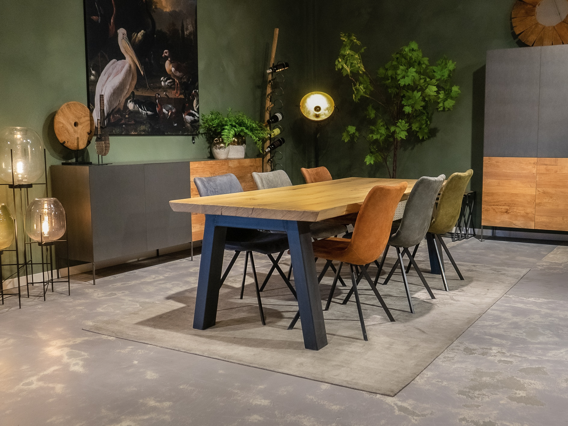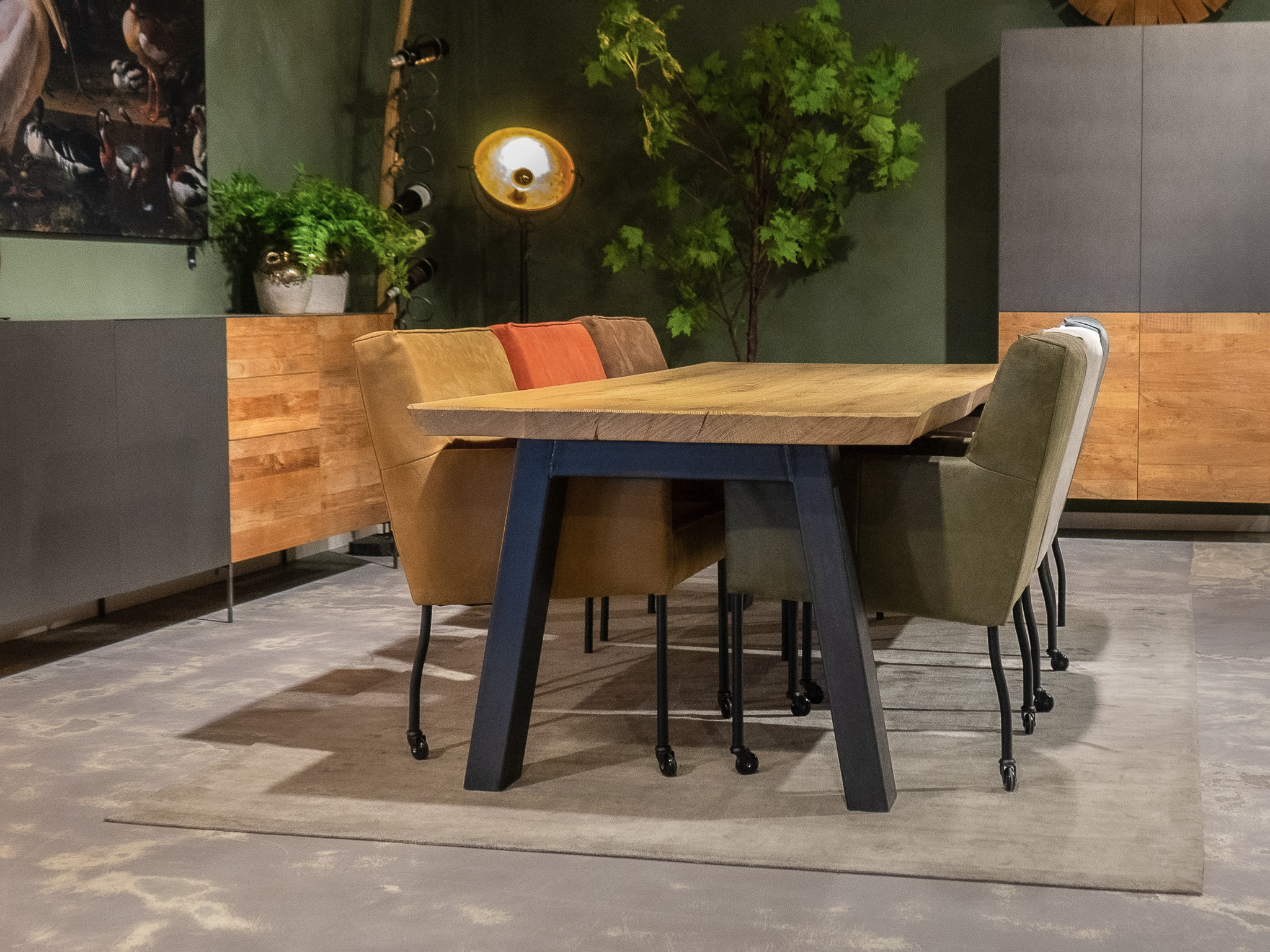 In beide showrooms vindt u een ruim aanbod van onze eigen maatwerk tafels, de diverse behandelingen, blad stijlen en afwerkingen van het tafelblad kunt u hier in het echt zien. We hebben echter niet alle tafels in de showroom staan, bent u op zoek naar een specifiek model, neem dan contact op om te horen of en in welke showroom dat model staat.