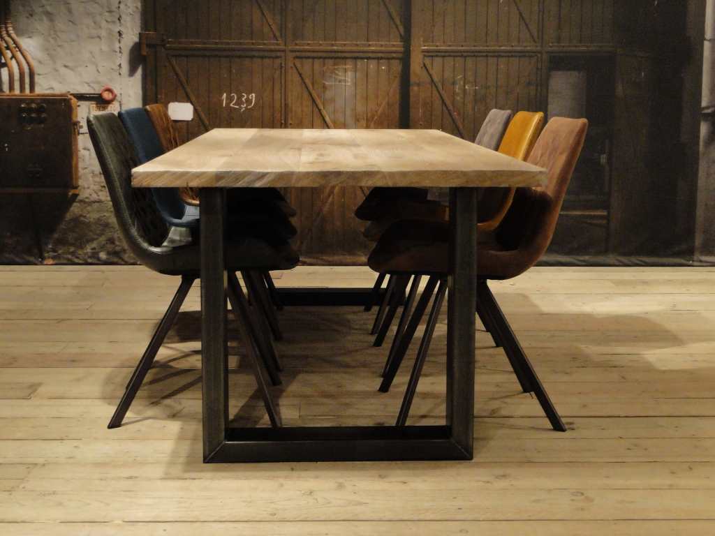 Minstens 100 jaar duurt het, voor de stam van een eik dik en sterk genoeg is om er robuuste tafels met slechts 3 of 4 brede planken van te maken. Het hout wordt zorgvuldig geselecteerd uit duurzaam beheerde Duitse en Franse productiebossen. Alleen het mooiste en beste hout wordt geselecteerd om dit model van te maken. Na het drogingsproces worden de juiste planken geselecteerd om uw geheel op maat gemaakte tafel van te maken. Dit model uit eigen werkplaats is ook leverbaar groter dan een 3 meter tafel, zelfs tot wel 4 meter lang en 120cm breed. Voor tafels groter dan 3 meter vragen we wel wat assisterende spierballen bij levering. Montage verzorgen wij.