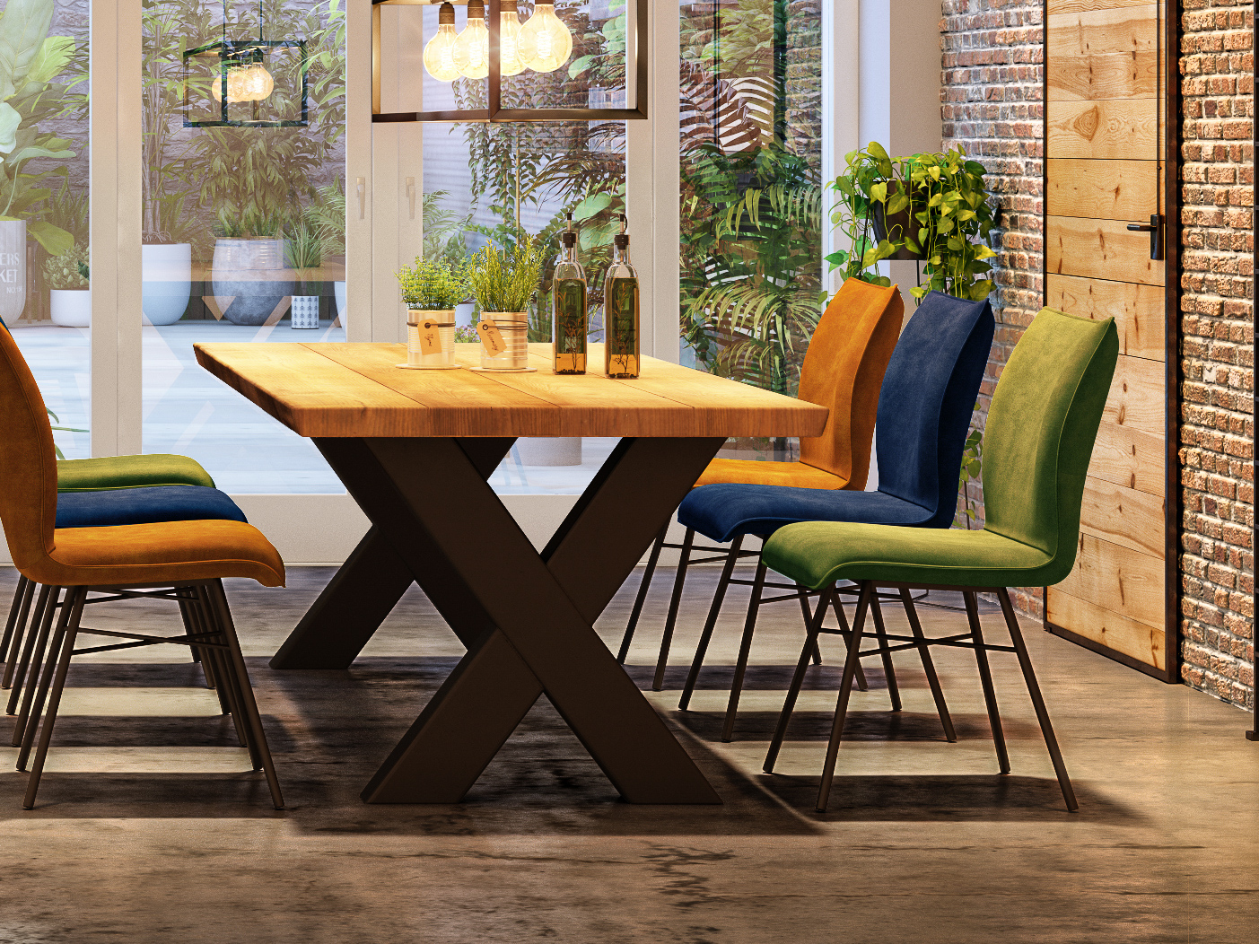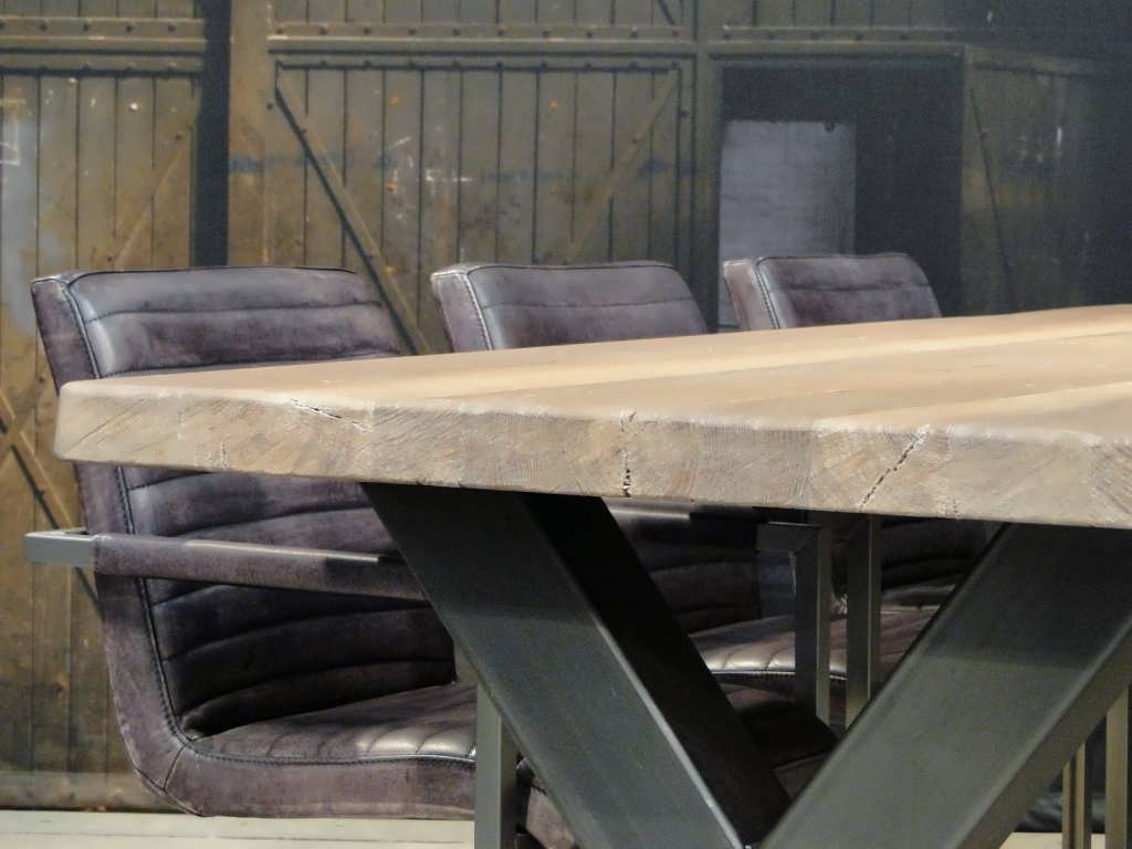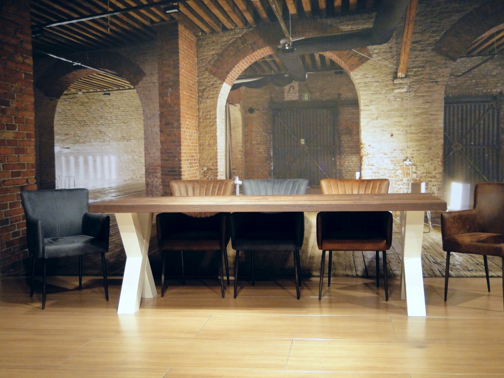 Een trend die de laatste jaren enorm gegroeid is in Nederland zijn de industriële tafels. Uiteraard mag een kruispoot tafel in uw woning dan ook niet ontbreken. Ook een houten kruispoot is een mogelijkheid, deze kan dezelfde kleur geleverd worden als het eiken tafelblad. Ook een profiel kruispoot tafel zit bij ons in de collectie, kijk maar eens naar de eetkamertafel Prato.