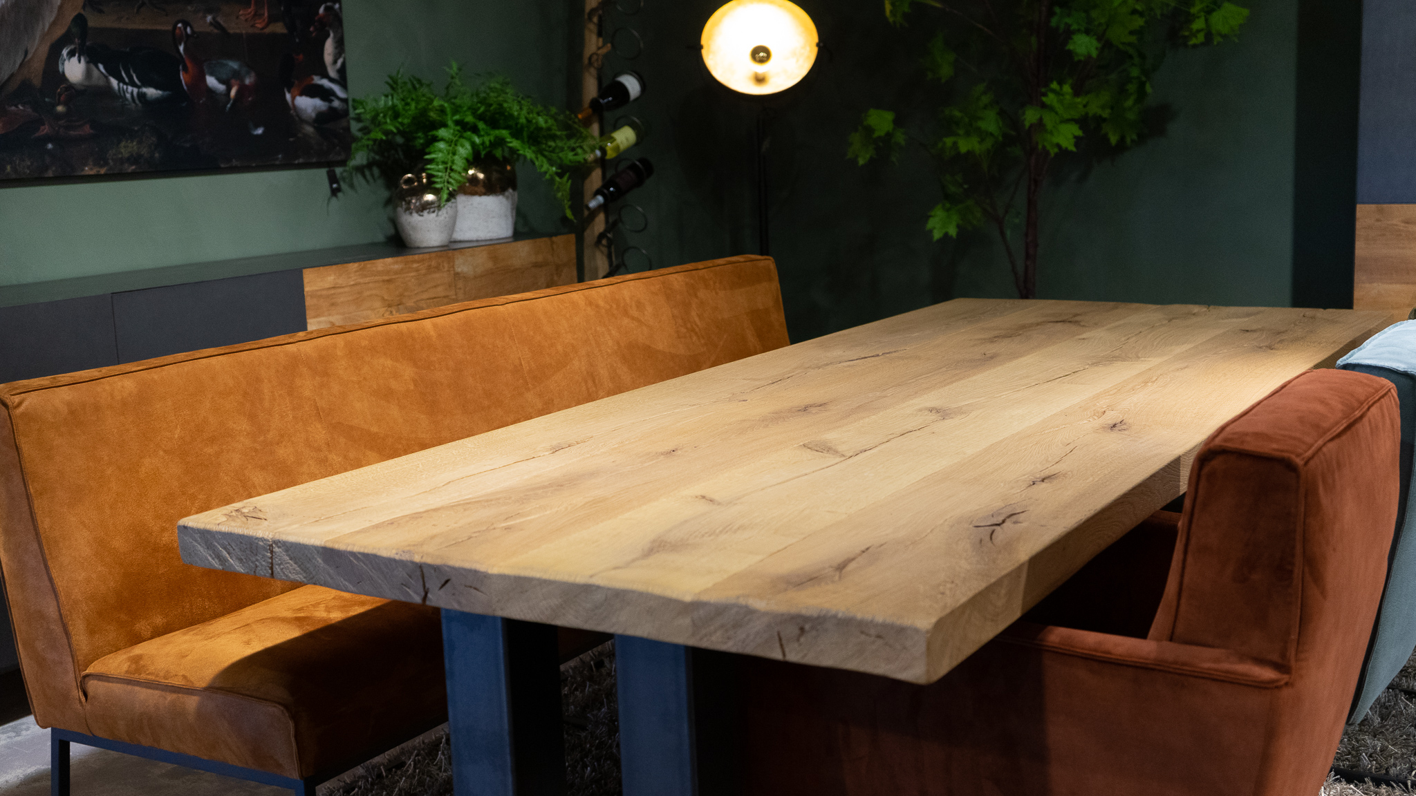 In beide showrooms vindt u een ruim aanbod van onze eigen maatwerk tafels, de diverse behandelingen, blad stijlen en afwerkingen van het tafelblad kunt u hier in het echt zien. We hebben echter niet alle tafels in de showroom staan, bent u op zoek naar een specifiek model, neem dan contact op om te horen of en in welke showroom dat model staat.