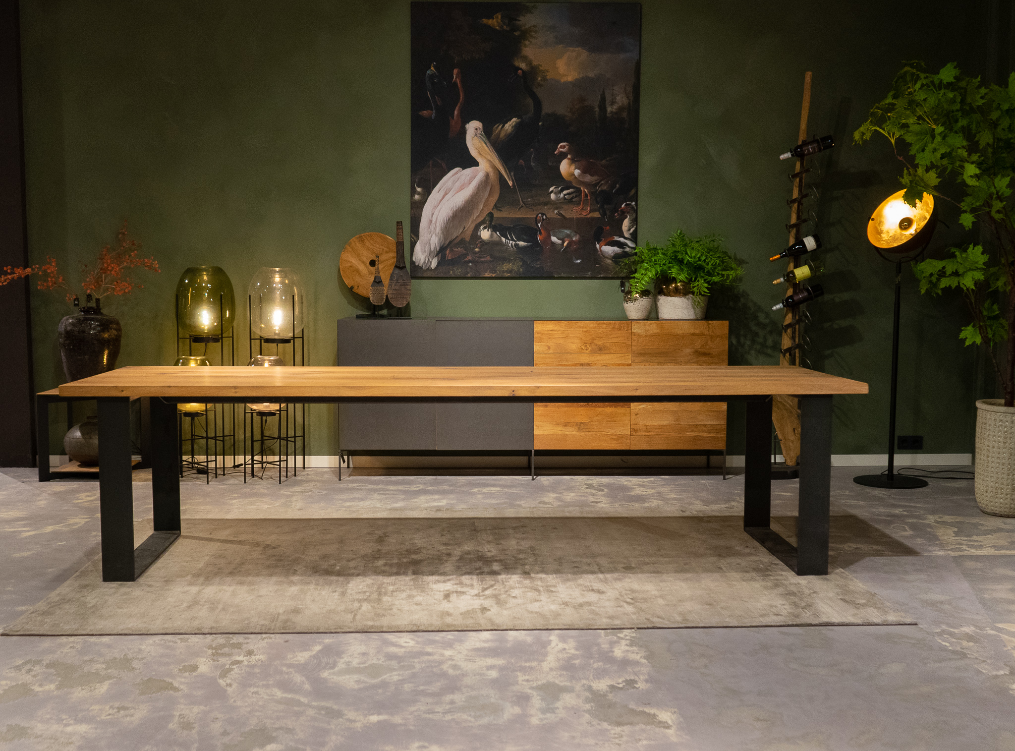 Minstens 100 jaar duurt het, voor de stam van een eik dik en sterk genoeg is om er robuuste tafels met slechts 3 of 4 brede planken van te maken. Het hout wordt zorgvuldig geselecteerd uit duurzaam beheerde Duitse en Franse productiebossen. Alleen het mooiste en beste hout wordt geselecteerd om dit model van te maken. Na het drogingsproces worden de juiste planken geselecteerd om uw geheel op maat gemaakte tafel van te maken. Dit model uit eigen werkplaats is ook leverbaar groter dan een 3 meter tafel, zelfs tot wel 4 meter lang en 120cm breed. Voor tafels groter dan 3 meter vragen we wel wat assisterende spierballen bij levering. Montage verzorgen wij.