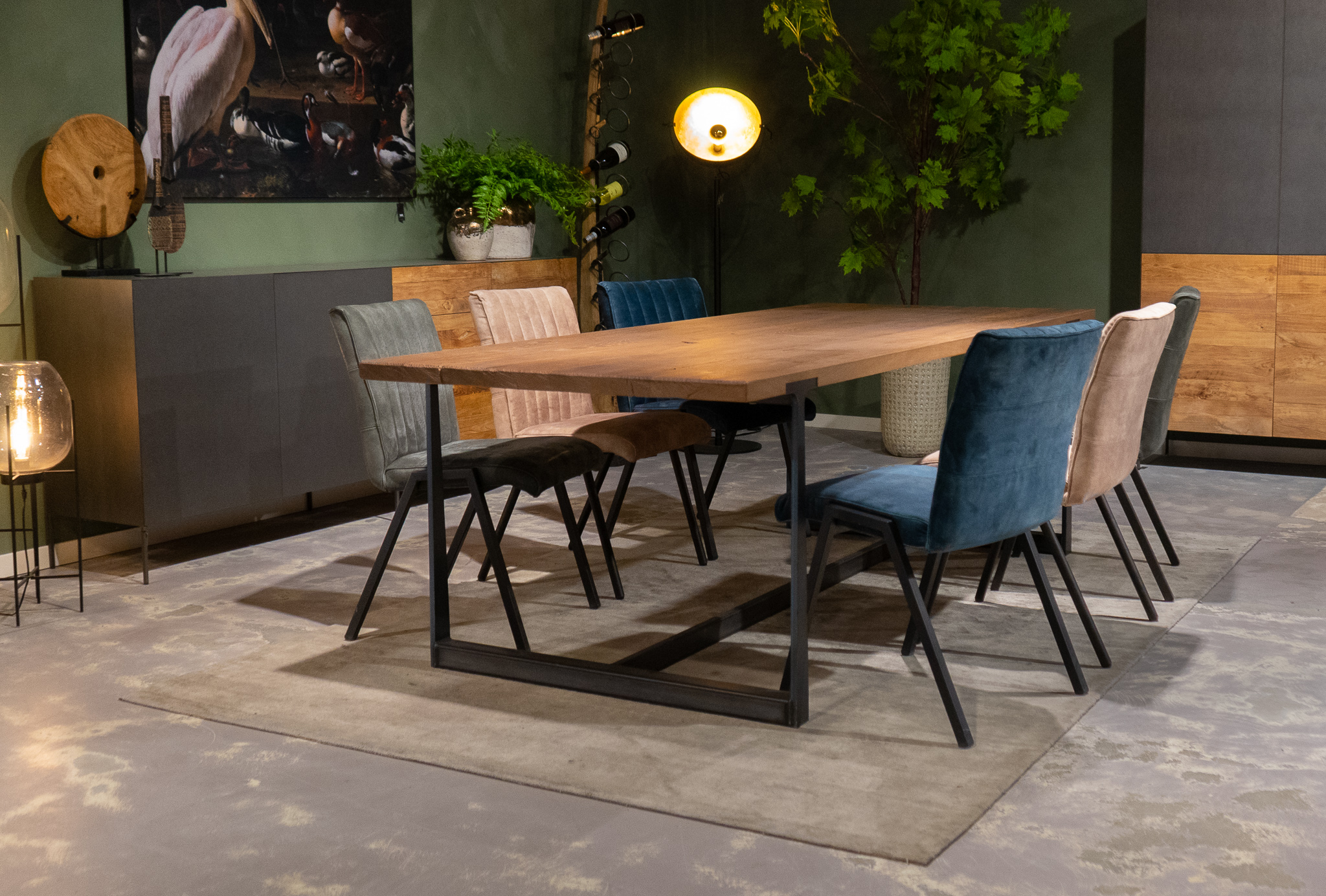 Bovenstaande afbeeldingen zijn puur ter indicatie, door gebruik van natuurlijke materialen en de unieke manier van behandelen zal er altijd kleurverschil zijn t.o.v. bovenstaande voorbeelden en de voorbeelden welke we in de showrooms hebben staan. Indien u een geoliede tafel heeft kiest, raden wij u ten zeerste aan om de tafel de eerste 4 weken volledig te ontzien. Gebruik bijvoorbeeld placemats voor borden en onderzetters voor glazen. Ook is het heel belangrijk om de tafel de eerste weken uitsluitend af te nemen met een droge doek.