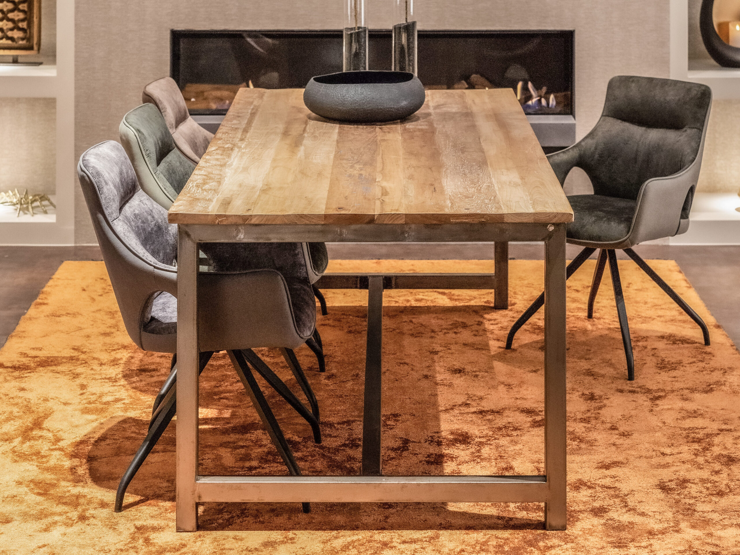 Stoere industriele tafel van oud recycled teak en stalen poten, leverbaar in diverse maten direct uit voorraad. Dit model combineert mooi met onze meubels uit de Asmund serie.