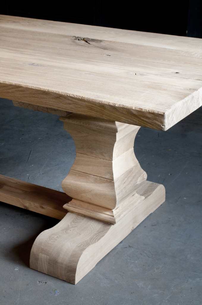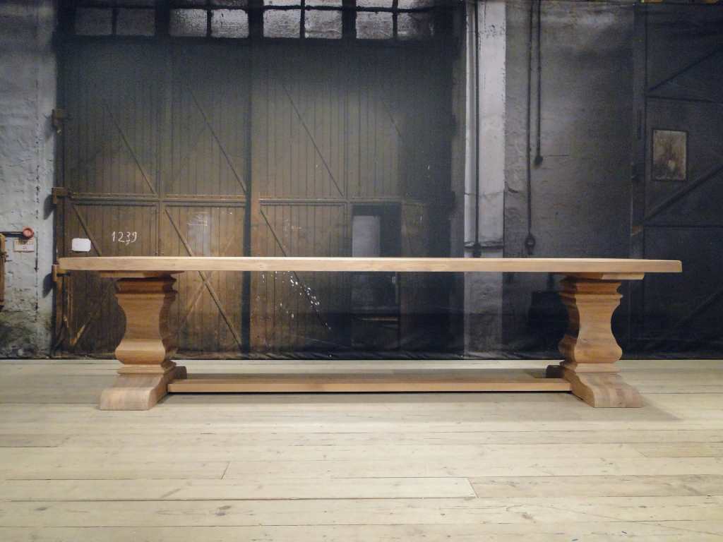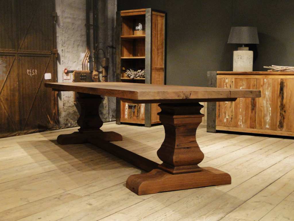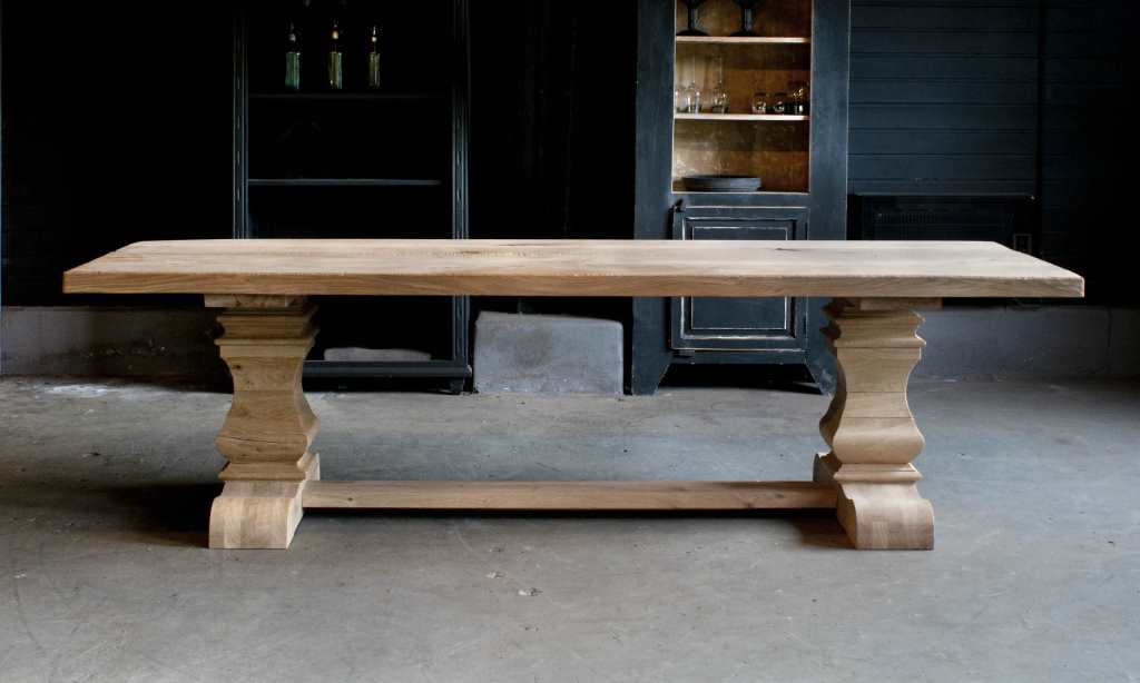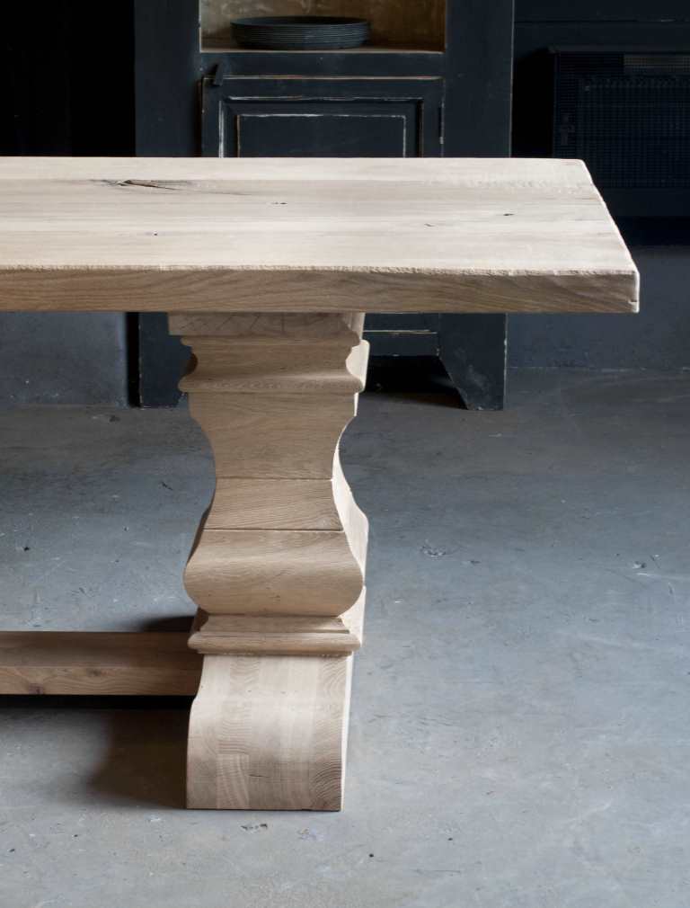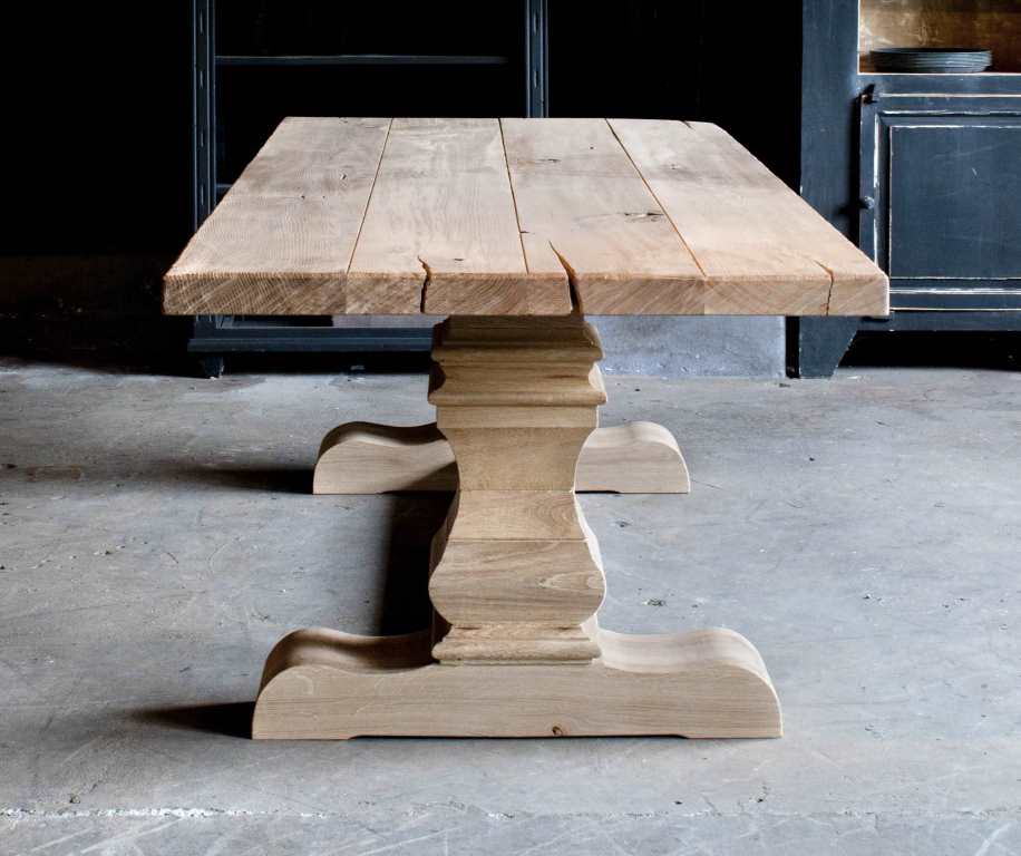 Minstens 100 jaar duurt het, voor de stam van een eik dik en sterk genoeg is om er robuuste tafels met slechts 3 of 4 brede planken van te maken. Het hout wordt zorgvuldig geselecteerd uit duurzaam beheerde Duitse en Franse productiebossen. Alleen het mooiste en beste hout wordt geselecteerd om dit model van te maken. Na het drogingsproces worden de juiste planken geselecteerd om uw geheel op maat gemaakte tafel van te maken. Dit model uit eigen werkplaats is ook leverbaar groter dan een 3 meter tafel, zelfs tot wel 4 meter lang en 120cm breed. Voor tafels groter dan 3 meter vragen we wel wat assisterende spierballen bij levering. Montage verzorgen wij.