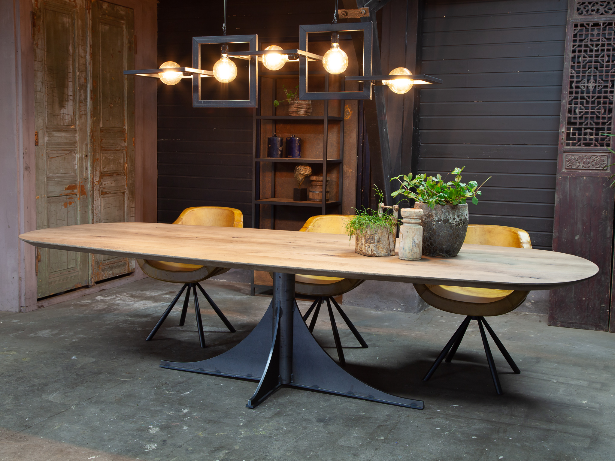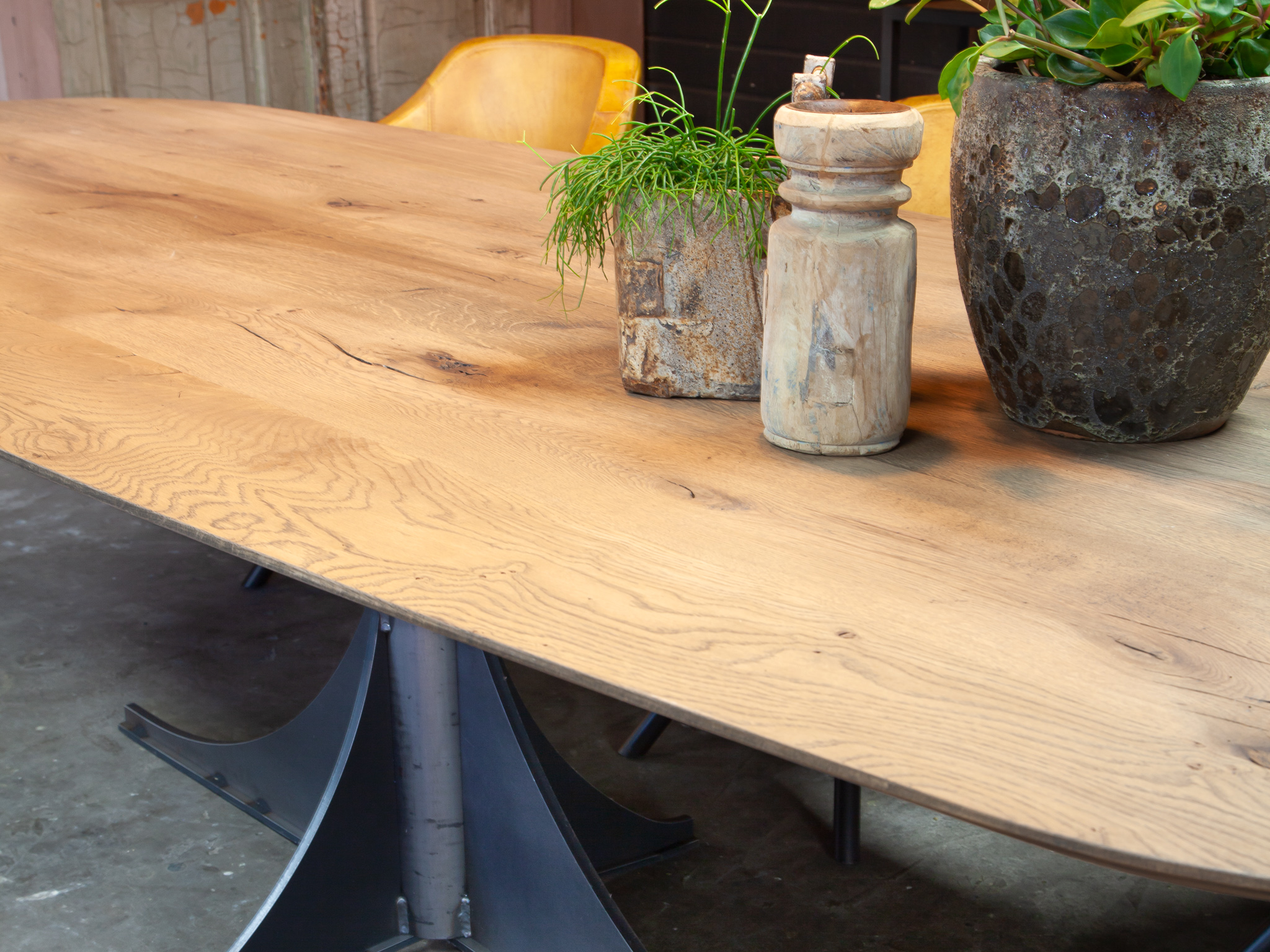 In beide showrooms vindt u een ruim aanbod van onze eigen maatwerk tafels, de diverse behandelingen, blad stijlen en afwerkingen van het tafelblad kunt u hier in het echt zien. We hebben echter niet alle tafels in de showroom staan, bent u op zoek naar een specifiek model, neem dan contact op om te horen of en in welke showroom dat model staat.