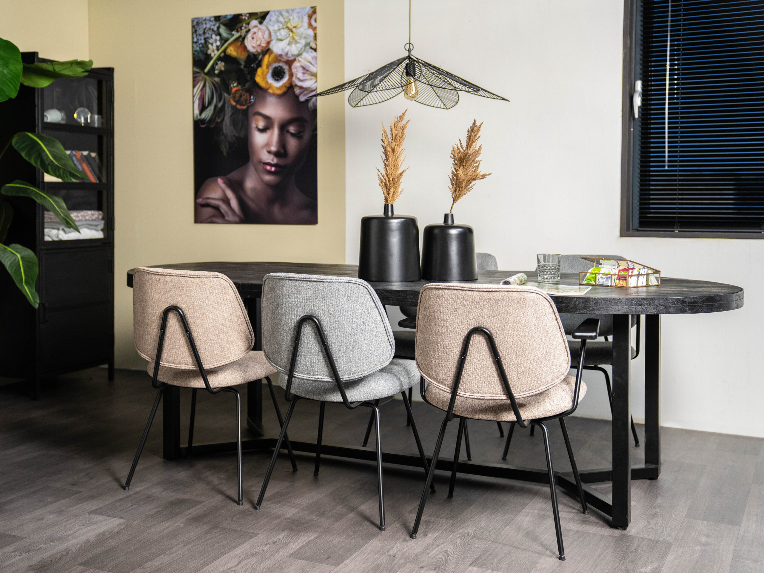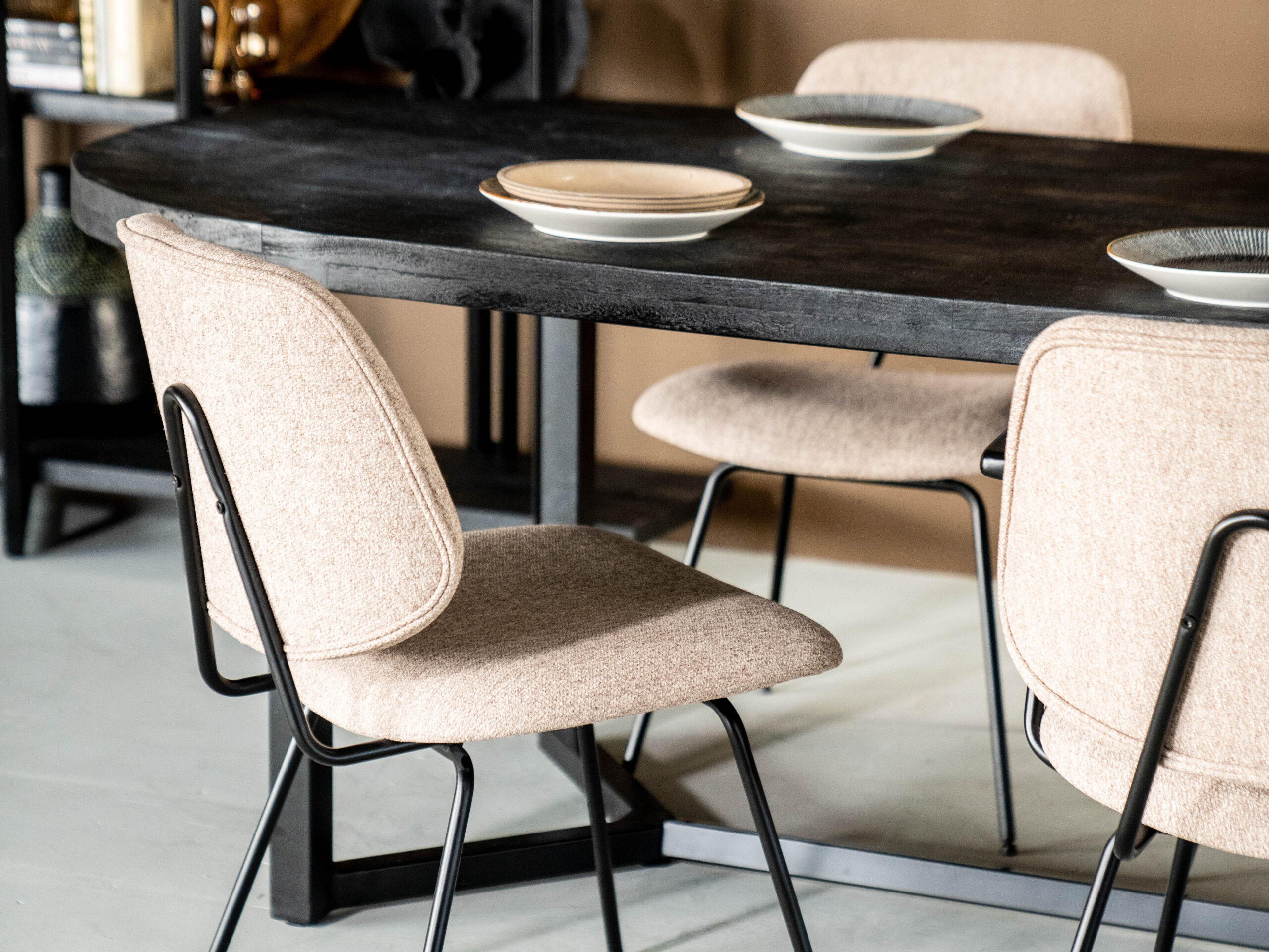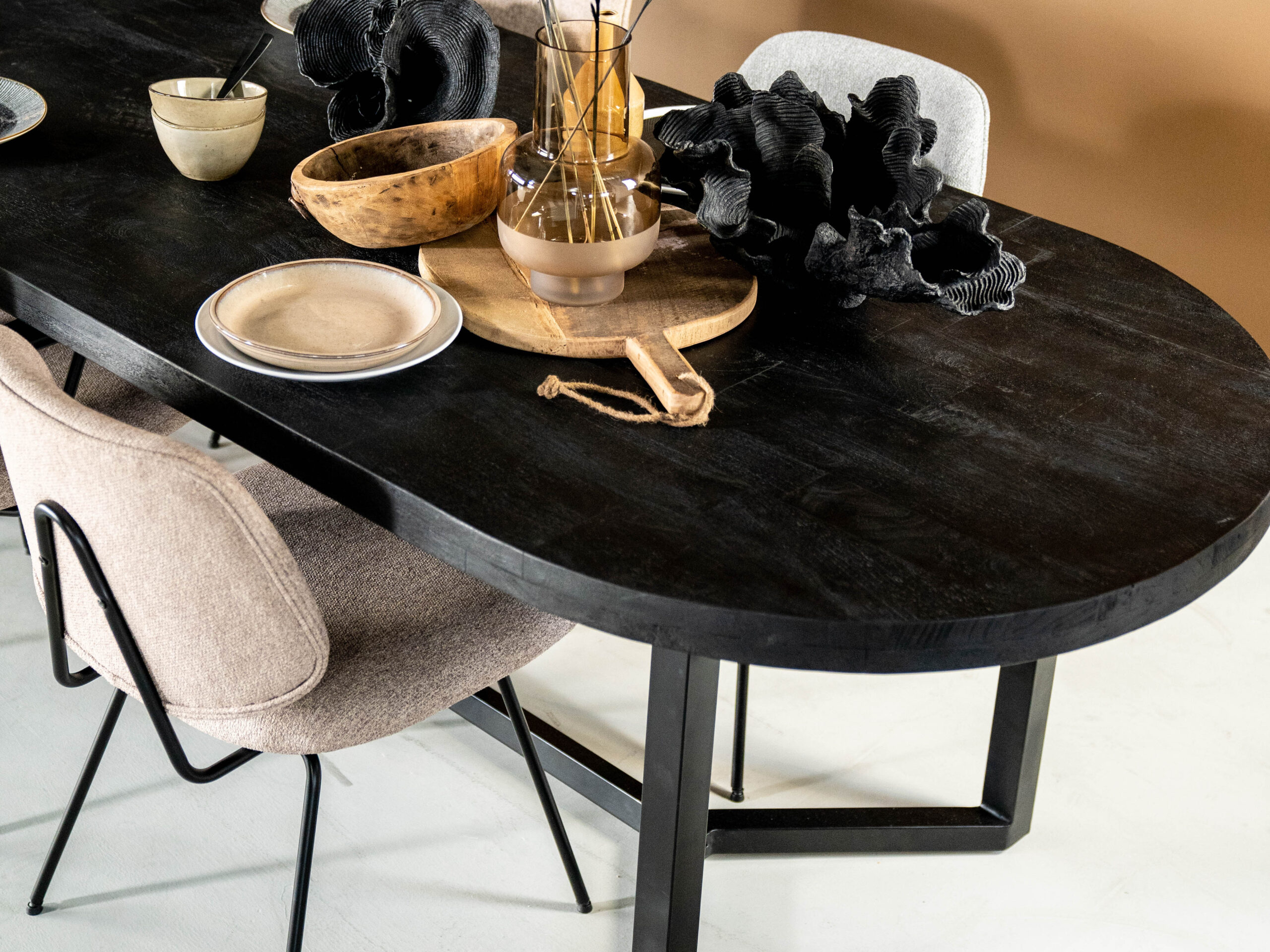 Ben je op zoek naar een ovale eettafel om een gezellige eethoek mee te creëren? Dan is onze zwarte ovale tafel Melbourne echt iets voor jou! Deze stoere tafel heeft een unieke uitstraling door de combinatie van het zwarte mangohouten blad en het zwart gecoate stalen frame. Dit zwarte onderstel geeft een bijzondere look aan deze tafel uit de collectie van Robuuste Tafels.