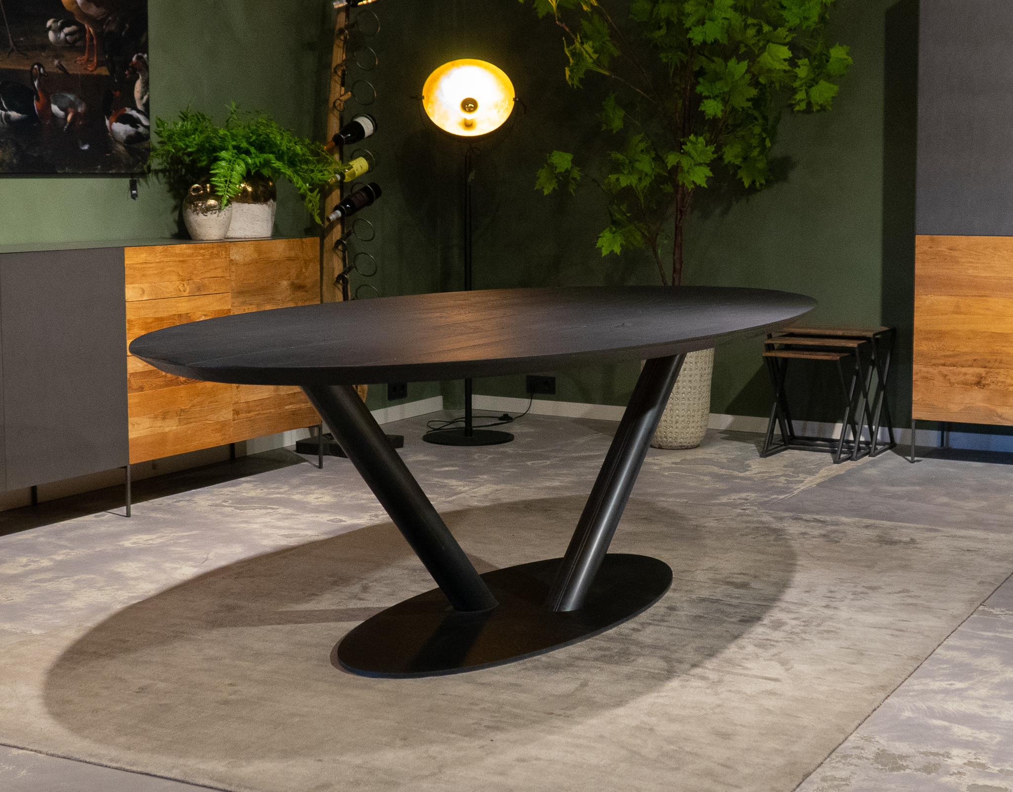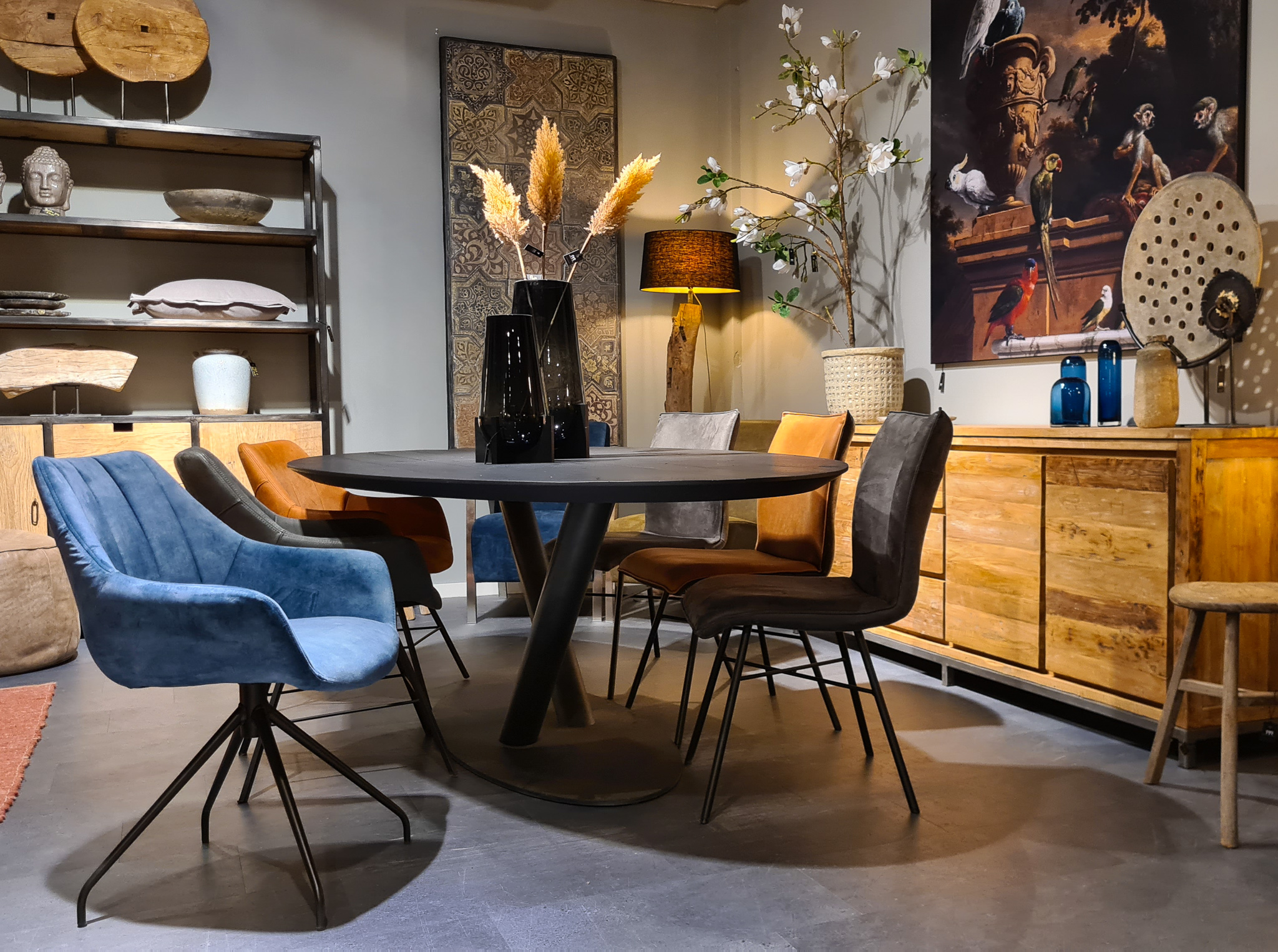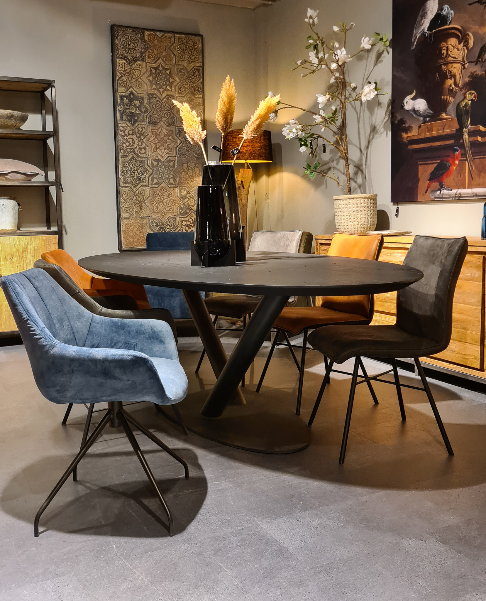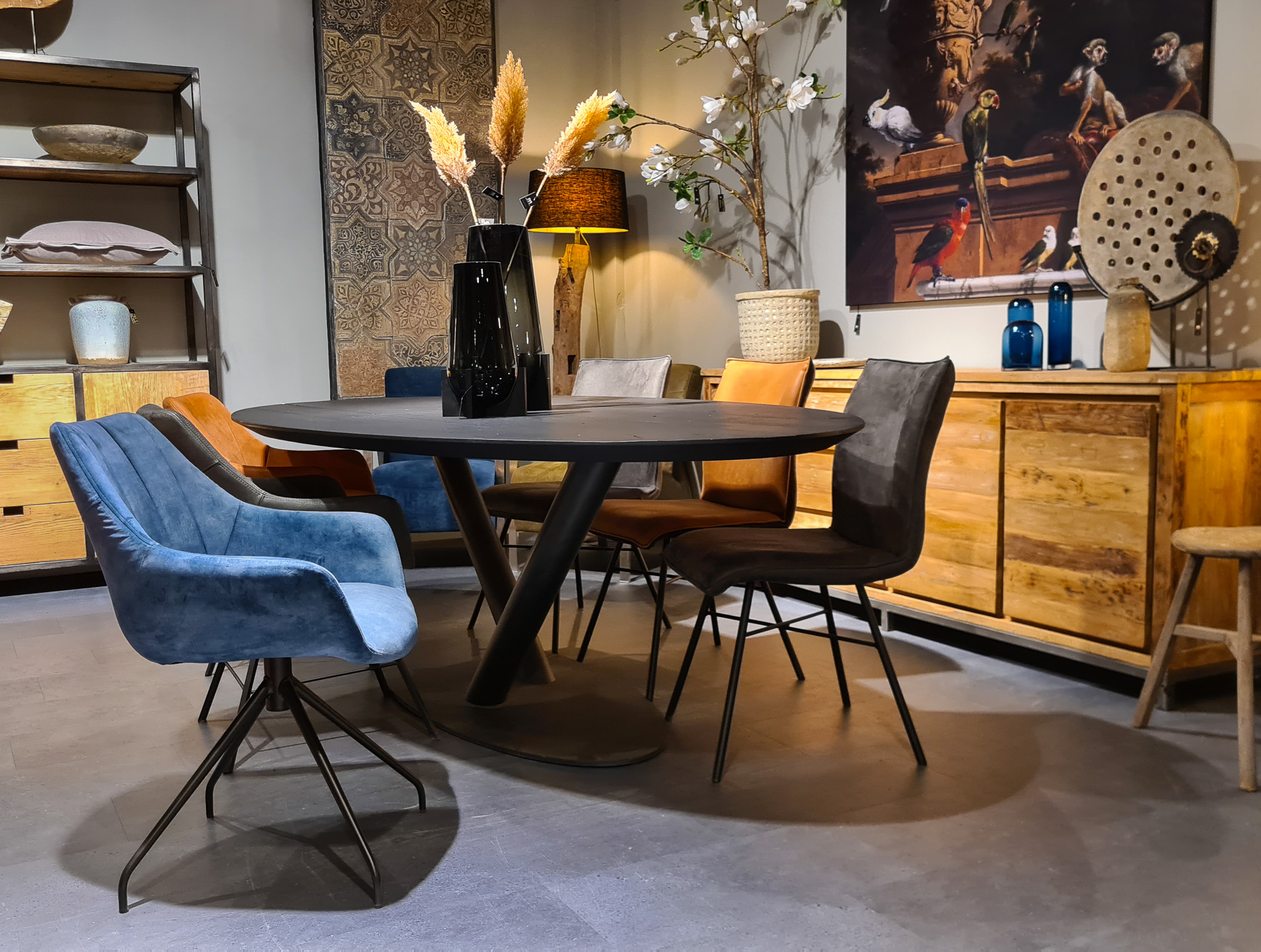 In beide showrooms vindt u een ruim aanbod van onze eigen maatwerk tafels, de diverse behandelingen, blad stijlen en afwerkingen van het tafelblad kunt u hier in het echt zien. We hebben echter niet alle tafels in de showroom staan, bent u op zoek naar een specifiek model, neem dan contact op om te horen of en in welke showroom dat model staat.