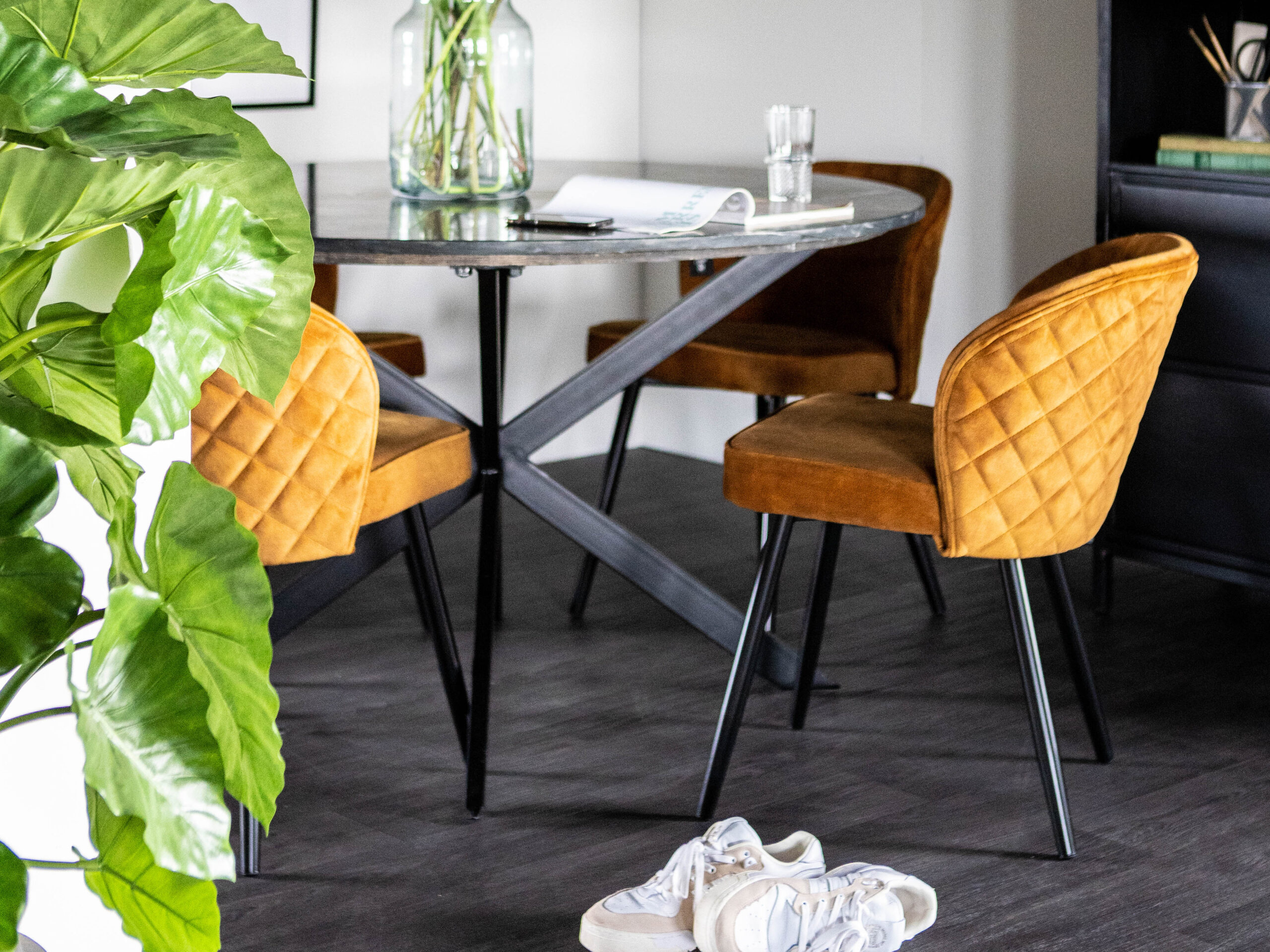 Ben je op zoek naar een eettafel om een gezellige eethoek mee te creëeren? Ronde eetkamertafel ‘Brisbane’ is dan echt iets voor jou. Deze tafel heeft een unieke uitstraling door de combinatie van het marmeren blad en het zwart gecoate stalen frame. De zwarte kruispoot geeft een bijzondere look aan de tafel uit de collectie van Robuuste Tafels.