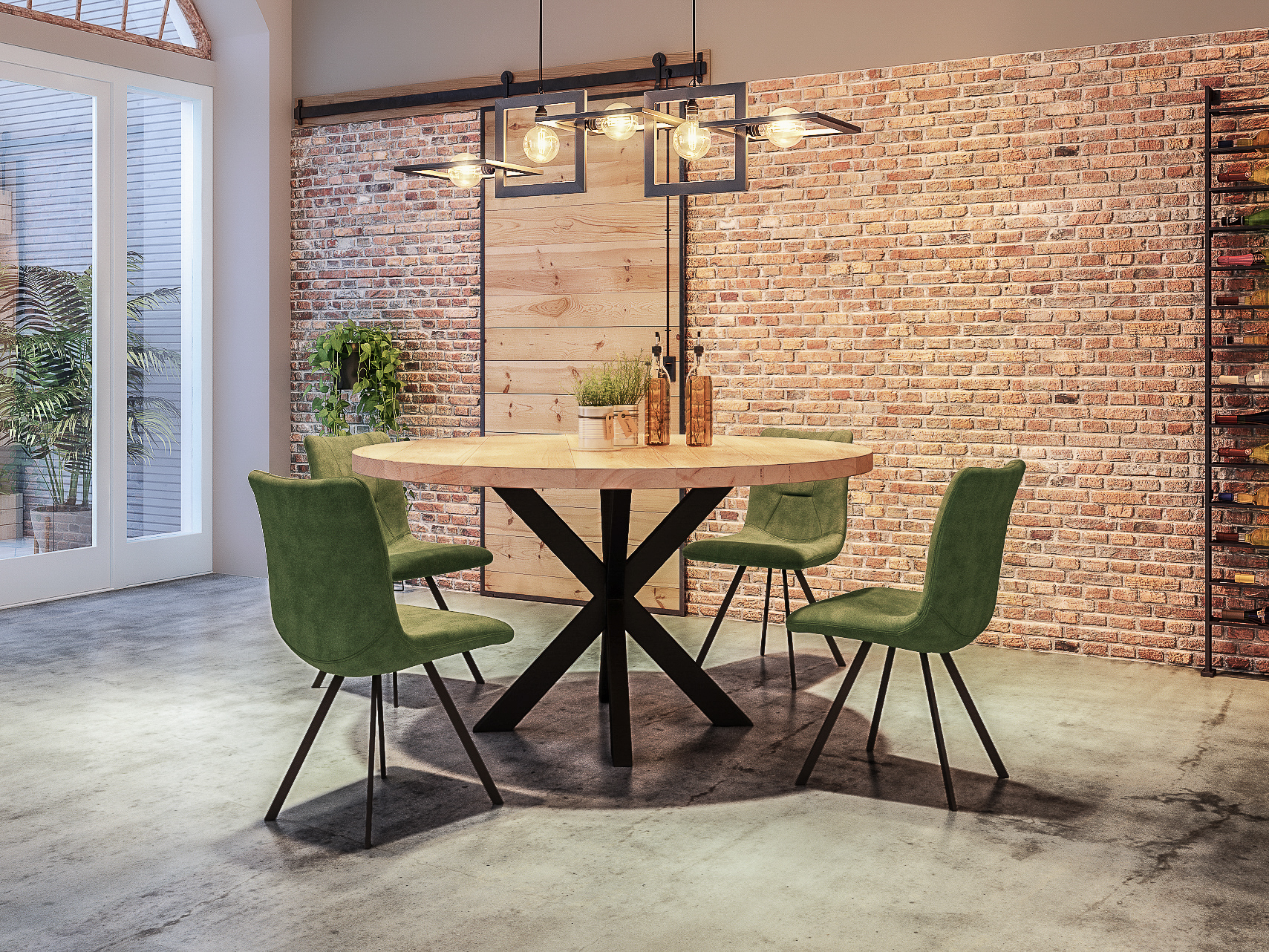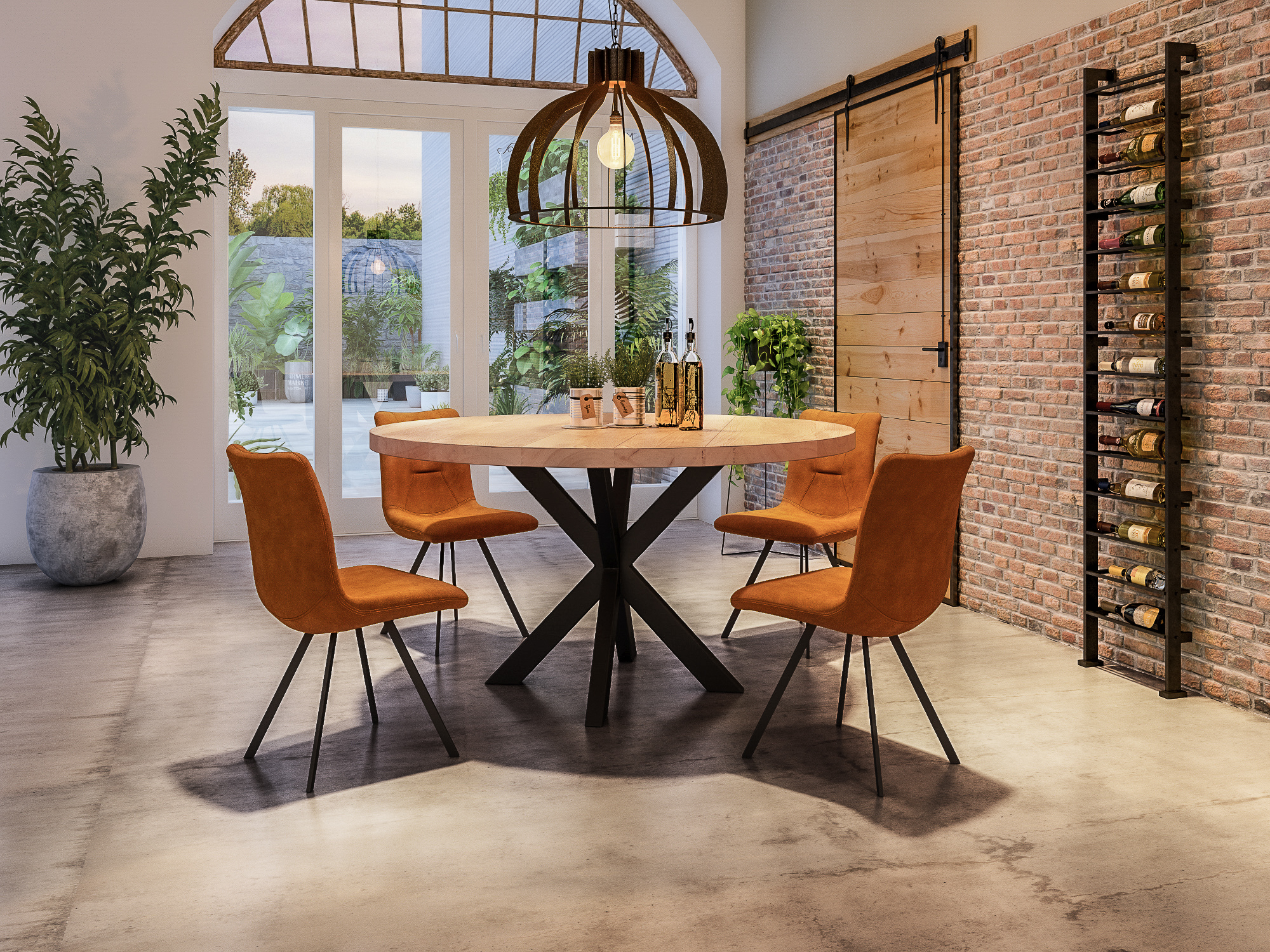 Deze industriële eettafel is leverbaar met zowel een rond als een vierkant tafelblad. Gemaakt van mooi massief rustiek eiken, met of zonder veel scheuren allemaal door u te kiezen. Daarnaast is dit model ook leverbaar met een houten onderstel, hiervoor geldt een meerprijs.