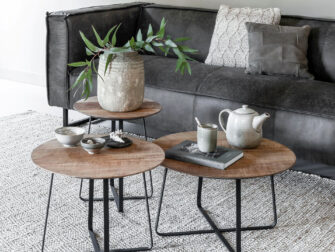 In onze collectie hebben we salontafels van eiken- en teakhout. De eiken salontafels hebben een blad van hoogwaardig eikenhout dat wij eigenhandig selecteren uit Europese productiebossen. Hierdoor zijn de eiken salontafels van hoge, sterke en duurzame kwaliteit, zodat u er jarenlang zorgeloos van kunt genieten. Onze teak salontafels worden vervaardigd uit gerecycled oud teakhout, ideaal voor een ruige look. Dit maakt onze salontafels van teakhout een bijzonder milieuvriendelijke keuze die ook nog eens prachtig staat in uw industriële interieur.