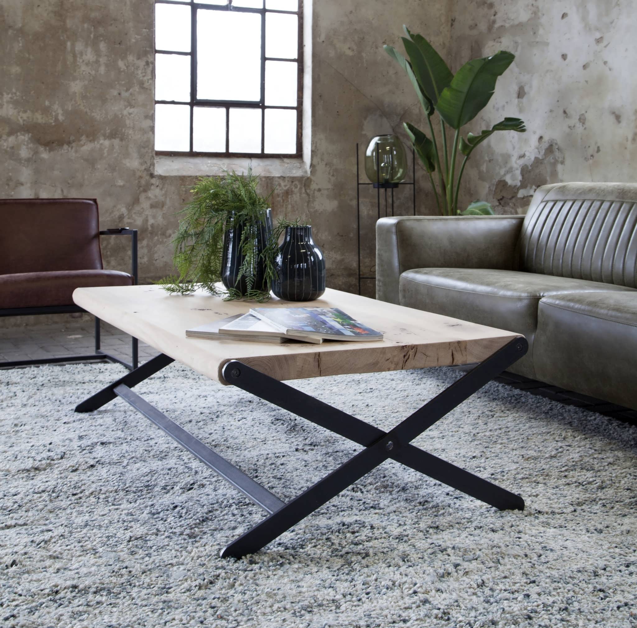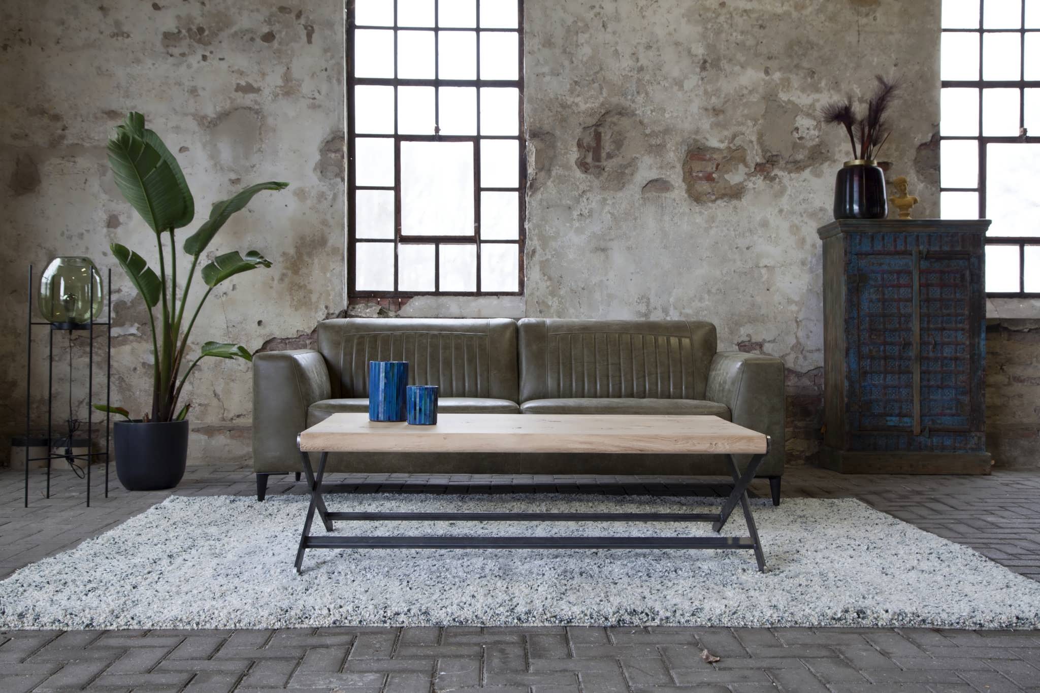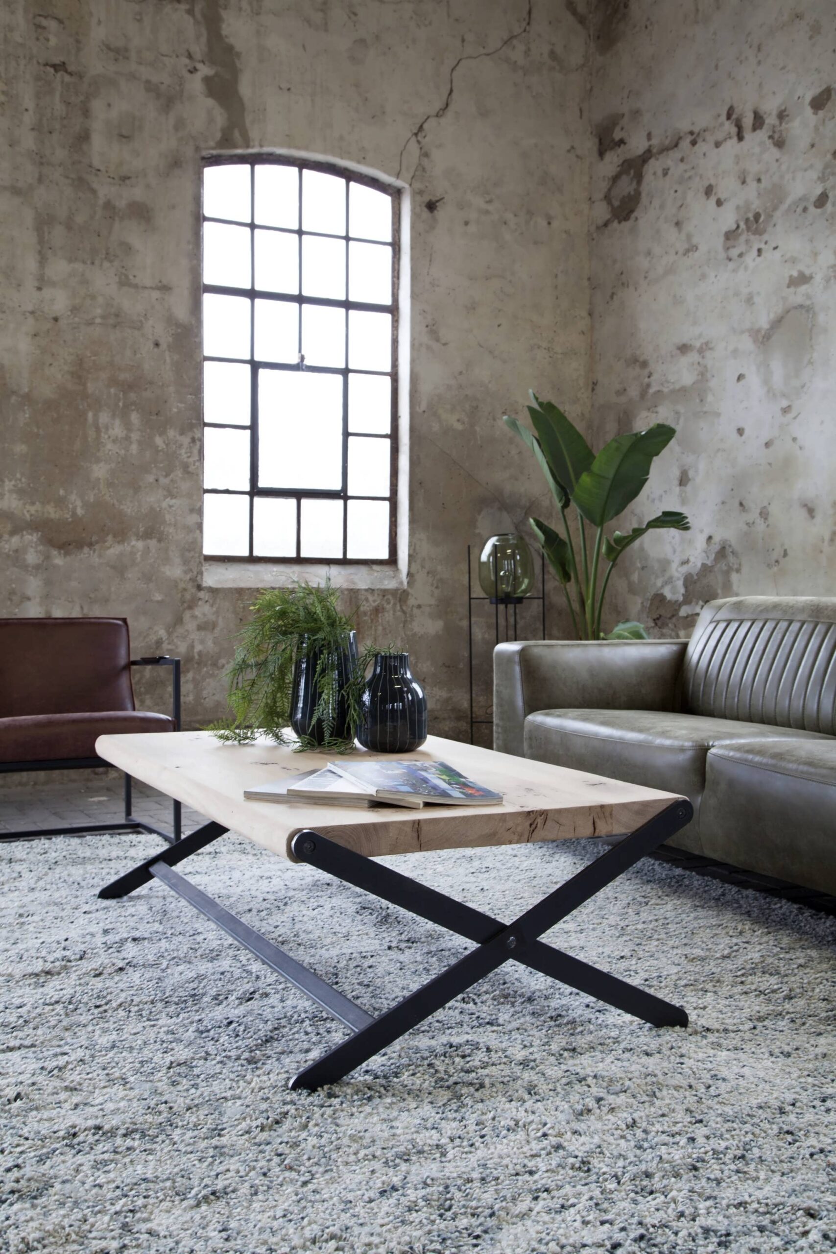 Stoere industriële salontafel met stalen kruispoot onderstel leverbaar in diverse maten. Naast de verschillende behandelingen welke ook voor onze eiken eettafels mogelijk zijn is ook de lengte, breedte en hoogte aan te passen. Ook hoe ruig het blad mag worden kunt u zelf kiezen, matig rustiek met weinig knoesten en scheuren, standaard rustiek met gemiddeld aantal knoesten en scheuren en extra rustiek met lekker veel knoesten en scheuren.