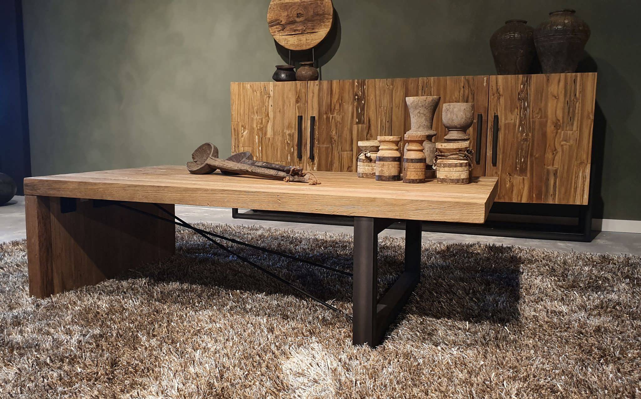 De mooiste planken worden geselecteerd voor dit model. Oud hout met een verhaal, elk meubelstuk is hierdoor uniek in gevoel en uitstraling en toch passen de meubels uit deze collectie geweldig bij elkaar. Tafels, kasten, salontafels en tv-meubels, desgewenst richt u uw hele woon- en eetkamer in met deze stijl meubels. De productie van deze meubels geeft het recycled hout een 2e leven, wat de meubels duurzaam en ecologisch verantwoord maken
