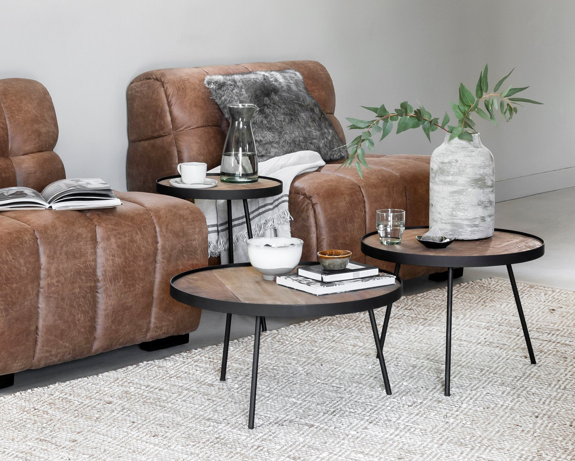 Mooie industriële ronde teak salontafel van oud recycled teak en stalen poten. Leverbaar doorgaans direct uit voorraad in 3 verschillende maten. Ook leuk als set van 3 stuks 🙂