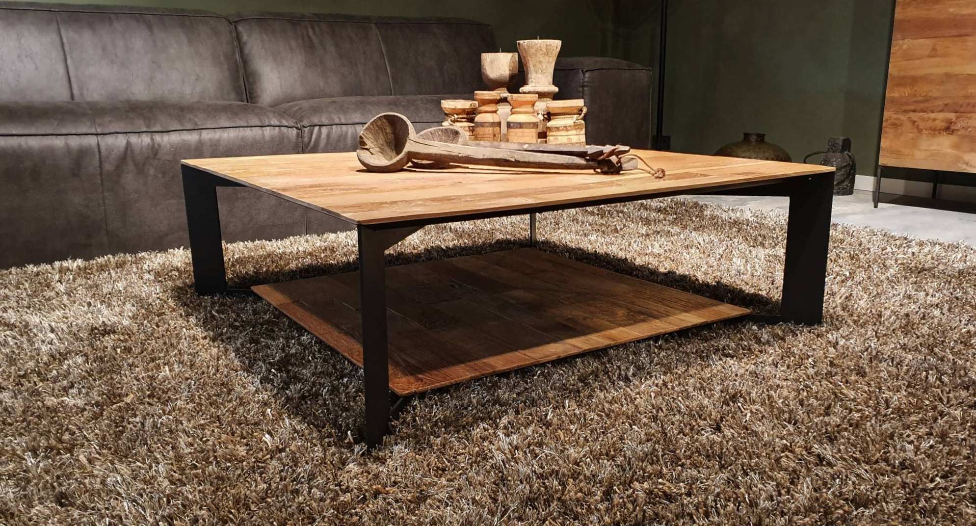 Mooie ranke salontafel met schuine stalen pootjes, gemaakt van oud recycled teak. Dit model combineert uiteraard mooi bij de overige meubels uit de Parrano serie, maar ook zeker bij de Cavallo, Ferro, Noma en Maldini welke ook gemaakt zijn van oud teak hout.