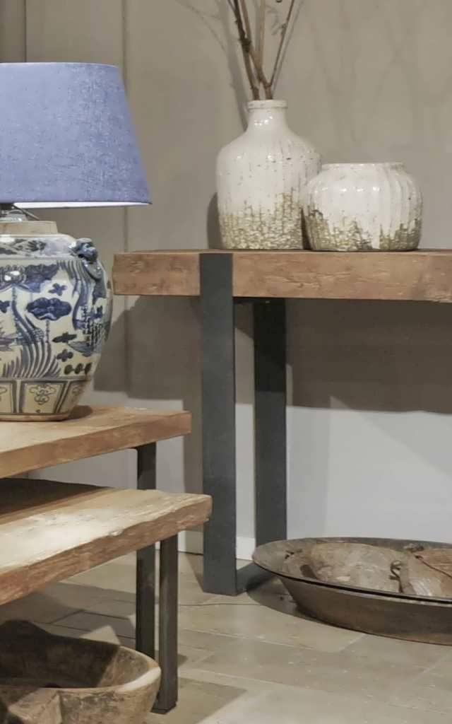 Onze meubels van recycled teak combineren heel mooi met de vele meubelen in oud hout welke we aanbieden. Of het nu een oud eiken eettafel of salontafel is, het oude hout met doorleefde uitstraling zal een fantastische combinatie zijn met deze handgemaakte meubels. Hier vindt u alle meubels gemaakt van dit hout.