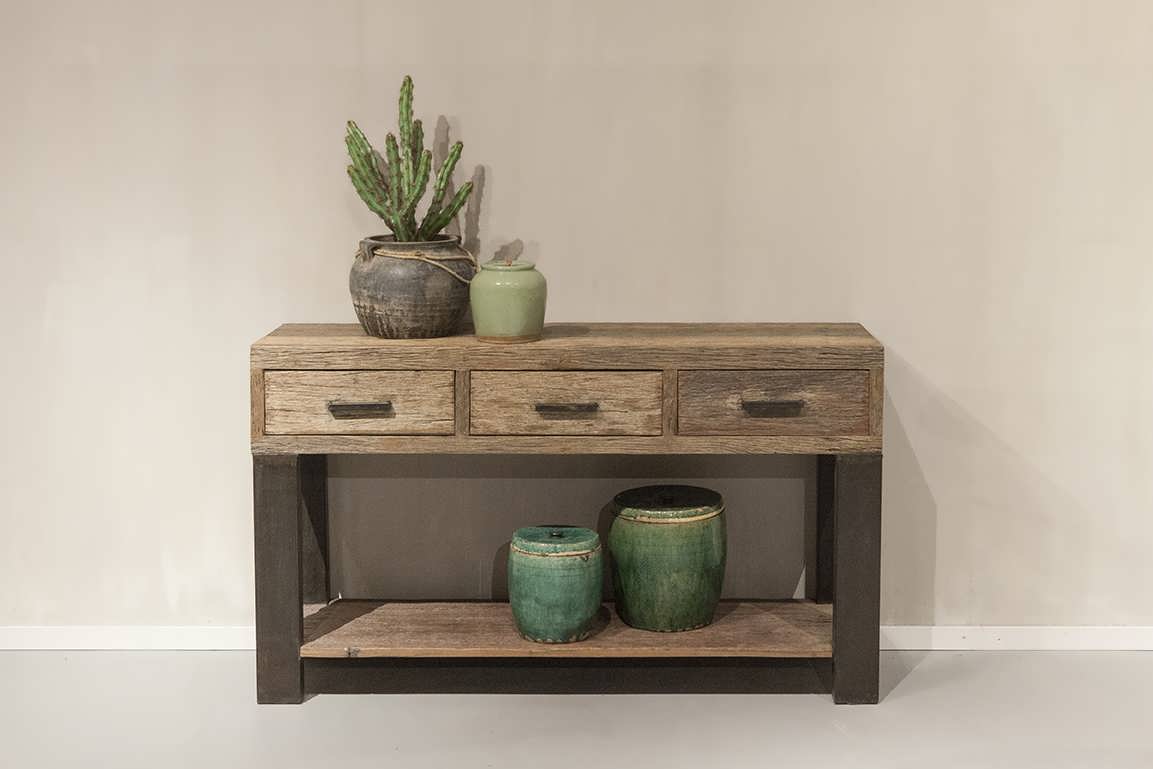 Stoere side table gemaakt van oud recycled hout en hand gesmede stalen poten. Dit model is leverbaar in 1 maat doorgaans direct uit voorraad. Dit model combineert mooi met onze andere meubels uit de Bailar lijn zoals een dressoir, tv-meubel en salontafel.