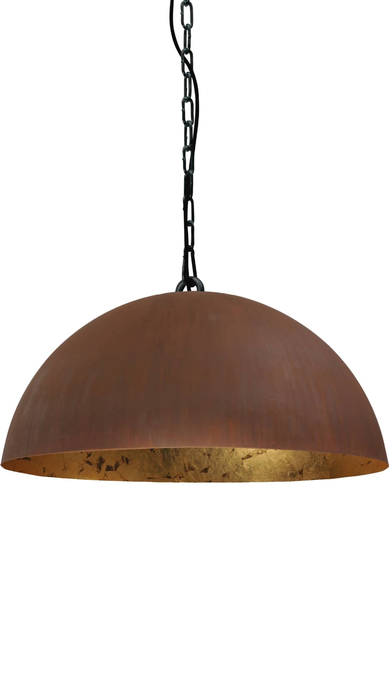 Een schitterende industriële hanglamp met stalen kap welke leverbaar is in diverse maten en uitvoeringen, zo kan deze in de gun metal kleur met 50cm kap zoals afgebeeld maar ook met een echt geroeste buitenkant of in een mooie industriële gun metal buitenkant en bladgoud binnenkant uitvoering. Een binnenkant in bladgoud, met de hand ingelegd, welke een extra warme uitstraling geeft is ook mogelijk. Deze industriële hanglamp wordt geheel in Nederland geproduceerd en is leverbaar met diverse kleuren kappen zowel voor de binnen als buitenkant, daarnaast is de kap ook verkrijgbaar in diverse maten. Ook de bijpassende lichtbron kunt u direct bij ons bestellen. Deze lamp hangt in onze showroom in Sliedrecht.