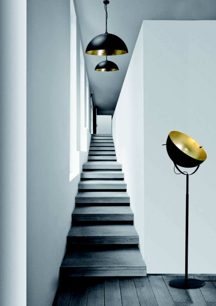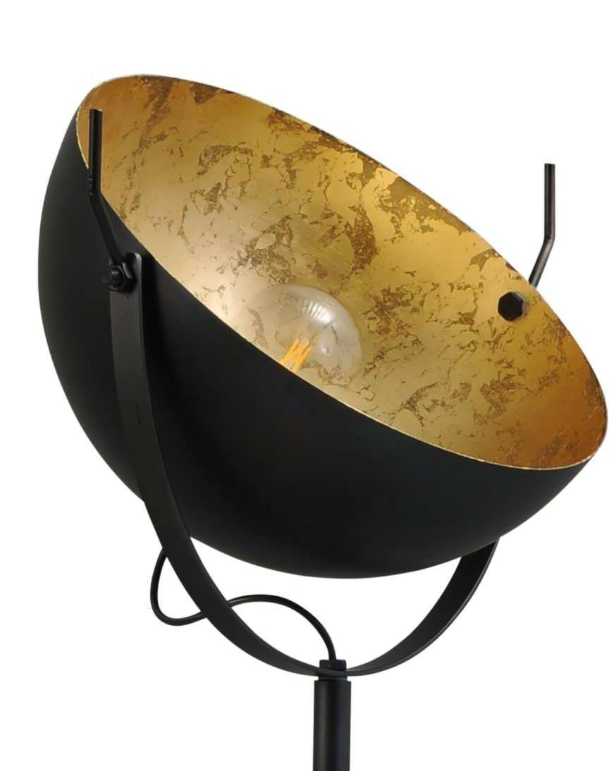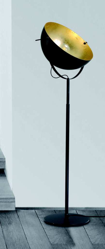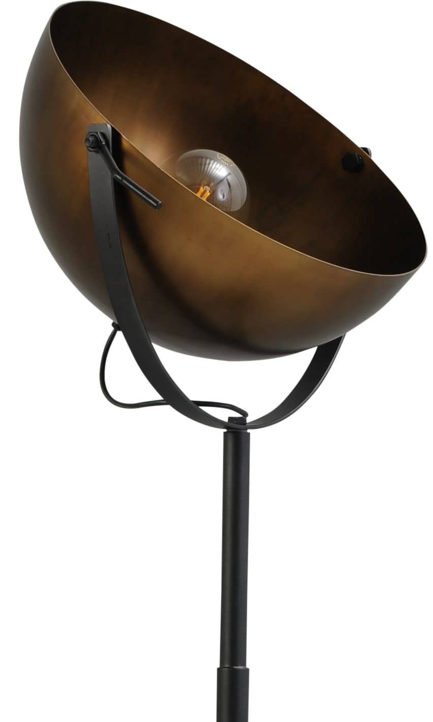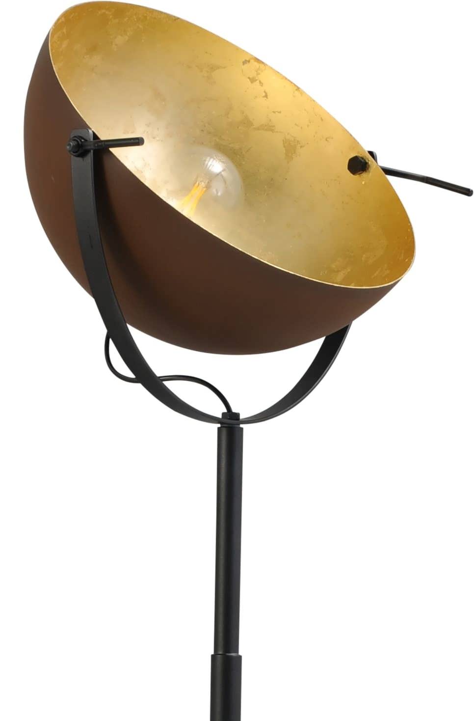 Een schitterende vloerlamp met een stalen kap welke leverbaar is in diverse maten en uitvoeringen, zo kan deze in de gun metal kleur maar ook met een echt geroeste buitenkant of in een mooie industriele dappled oil uitvoering. Een binnenkant in bladgoud, met de hand ingelegd, geeft een extra warme uitstraling. De kap is te verstellen middels de beugel. De voet heeft een donker, bijna zwarte metalen kleur. Deze vloerlamp wordt in Nederland geproduceerd en is leverbaar met diverse kleuren kappen zowel voor de binnen als buitenkant, daarnaast is de kap ook verkrijgbaar in diverse maten. Ook de bijpassende lichtbron kunt u direct bij ons bestellen. Deze lamp staat in onze showroom in Sliedrecht.
