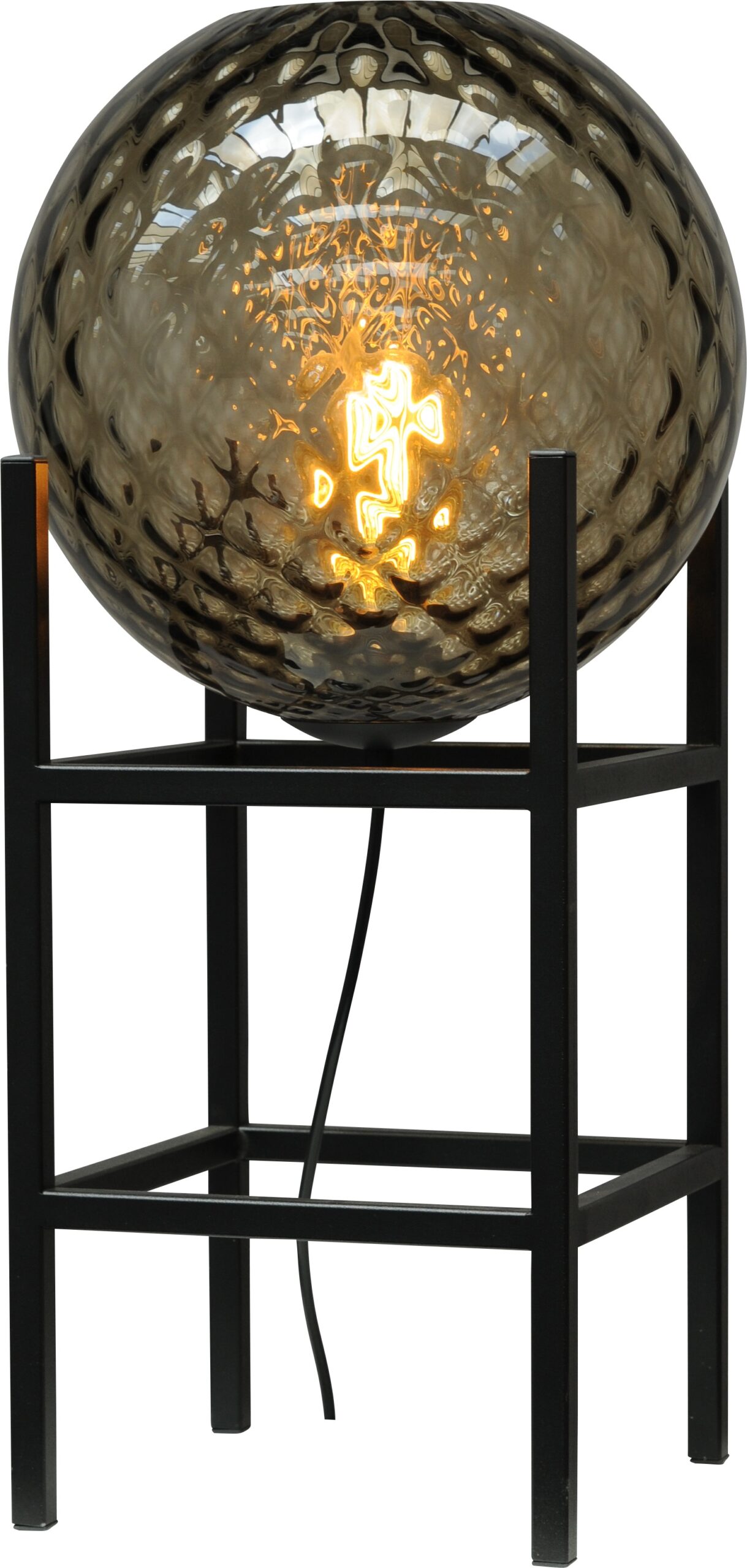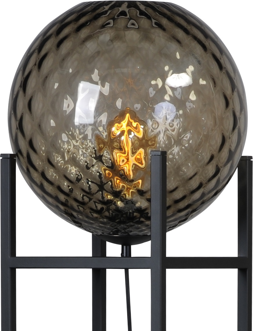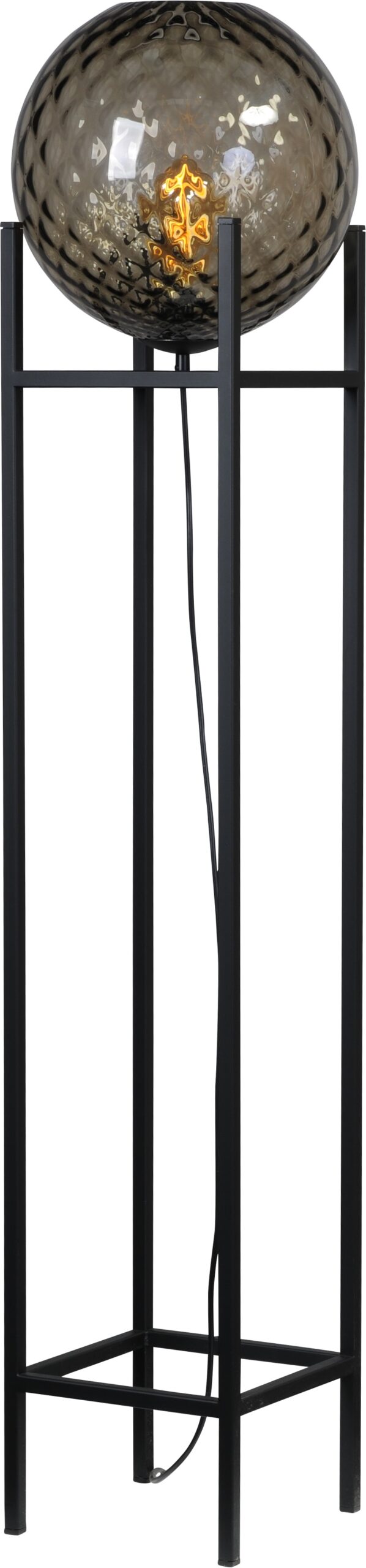 Mooie vloerlamp met geribbeld zwart kleurig glas, leverbaar in verschillende hoogten.
