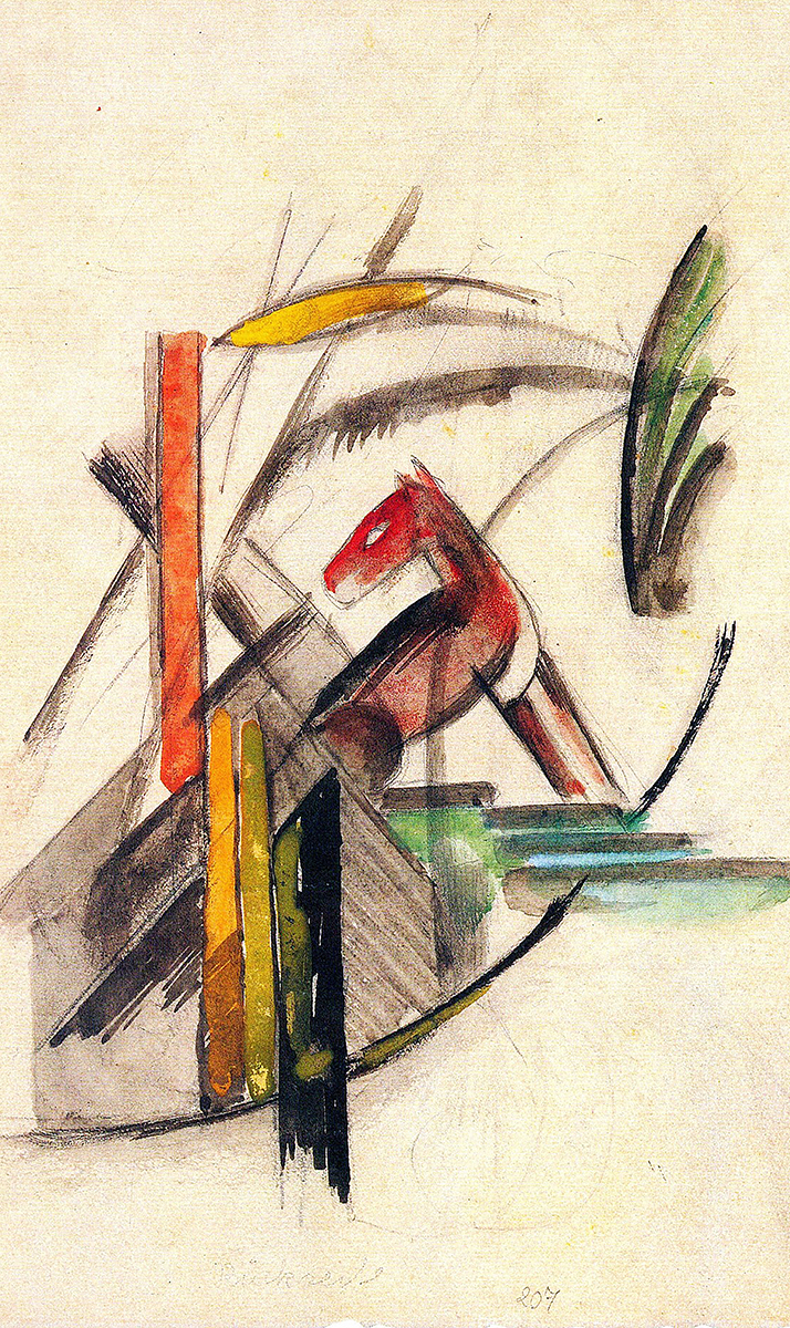 Franz Marc was een Duitse schilder en een sleutelfiguur in het Duitse expressionisme. Marc produceerde het werk ´Animal ´waarin een abstracte, kubistische interpretatie van een paard wordt weergegeven in contrasterende primaire kleuren.