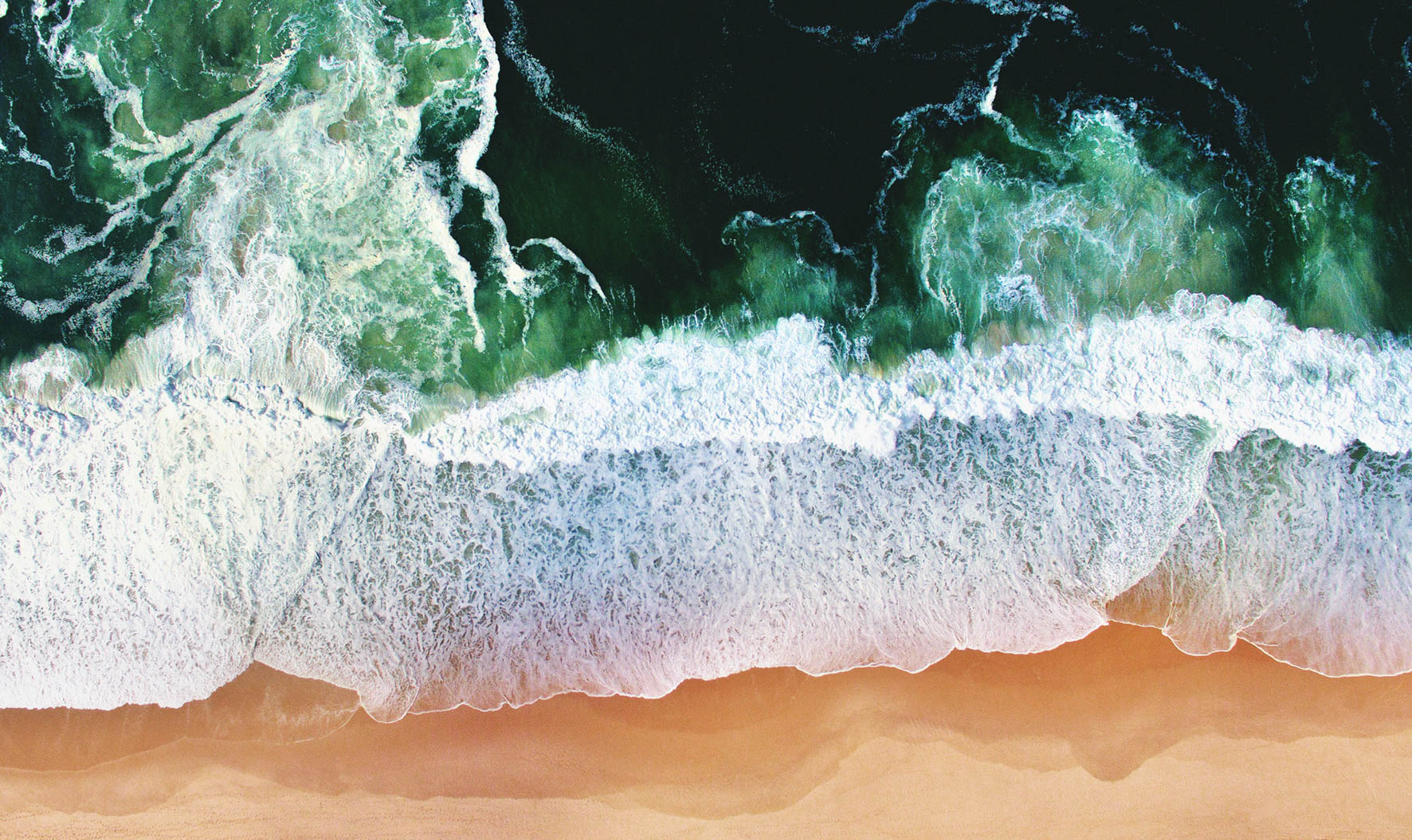 Een grote golf met een witte schuimkraag die het strand bereikt.
