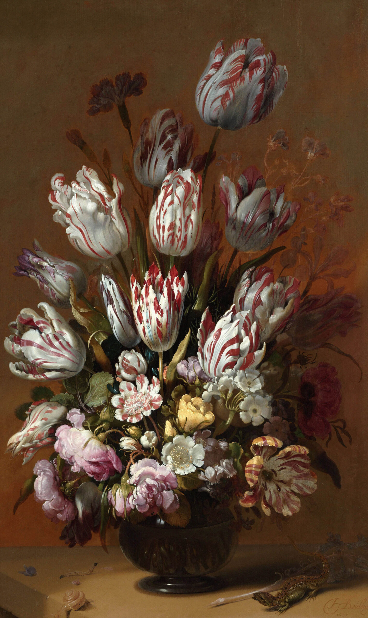 Stilleven met bloemen. Dit meesterwerk van Bollongier werd in 1639 geschilderd. Een fantastische sfeer in het schilderij in combinatie met het kleurgebruik en detail.Het is te zien in het Rijksmuseum en werd in 1883 al door het museum aangekocht.