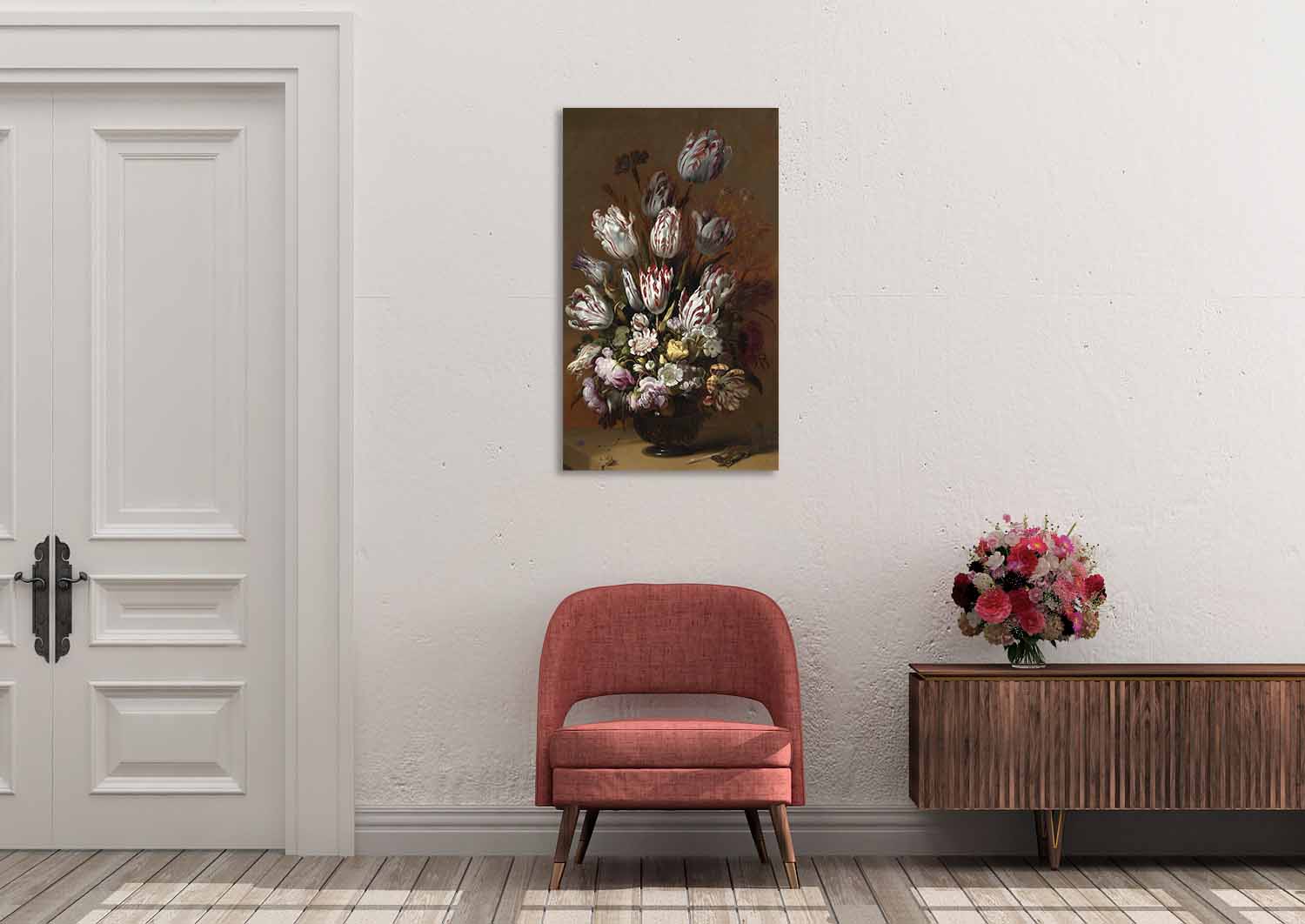 Stilleven met bloemen. Dit meesterwerk van Bollongier werd in 1639 geschilderd. Een fantastische sfeer in het schilderij in combinatie met het kleurgebruik en detail.Het is te zien in…