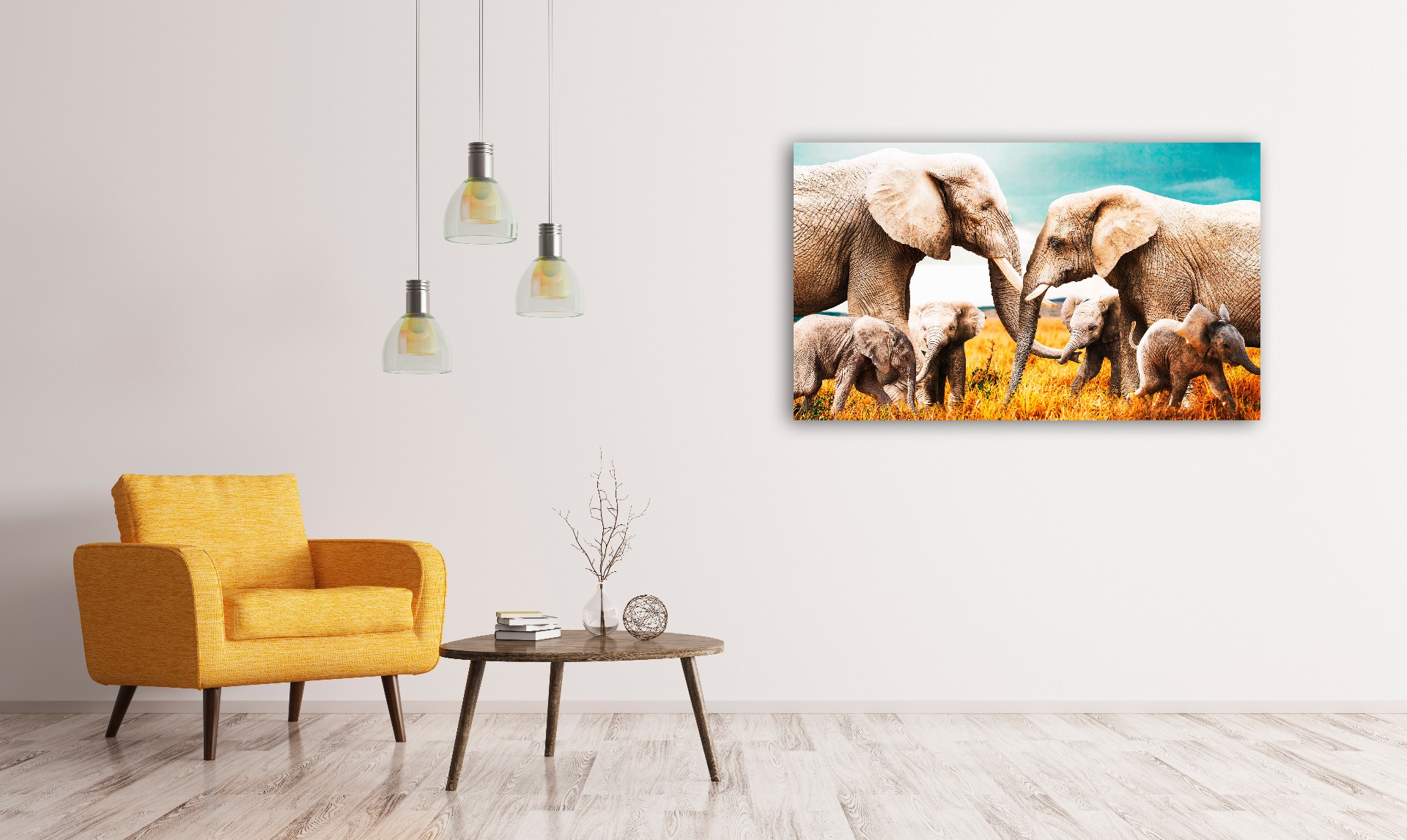 Dit ontwerp van een oliefantenfamilie ademt de sfeer van afrika.
