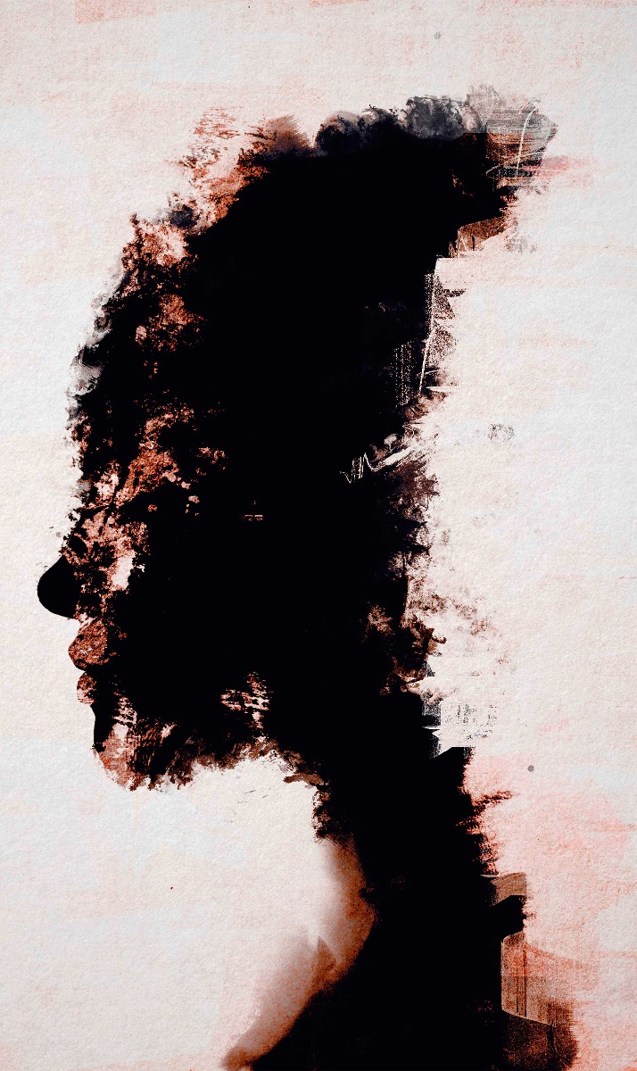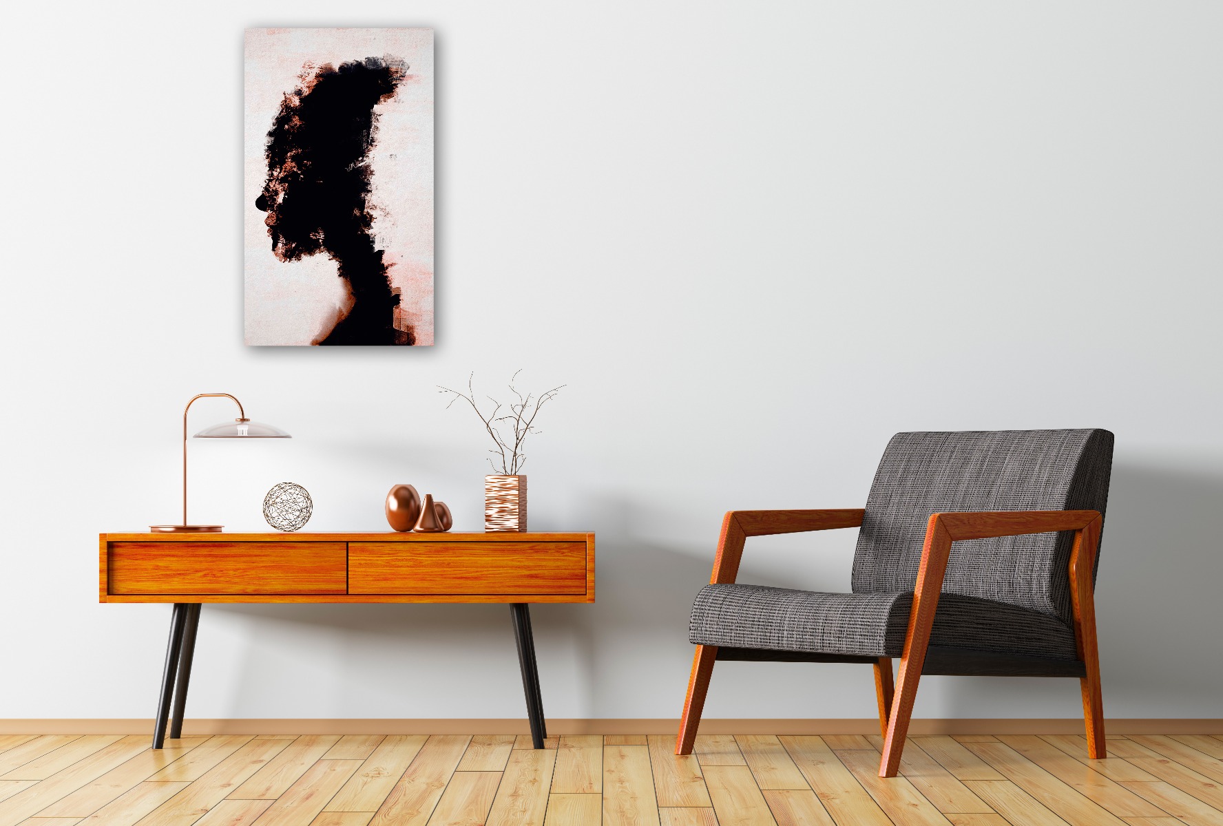 Abstract ontwerp van het Silhouette van het gezicht van een vrouw. Uitgevoerd met een vintage touch en een warme kleurstelling.