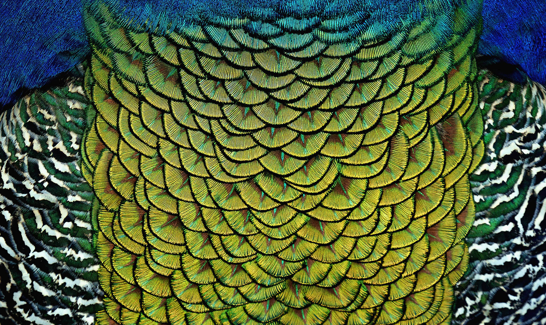 Een overgang in schubben van groen naar blauw.